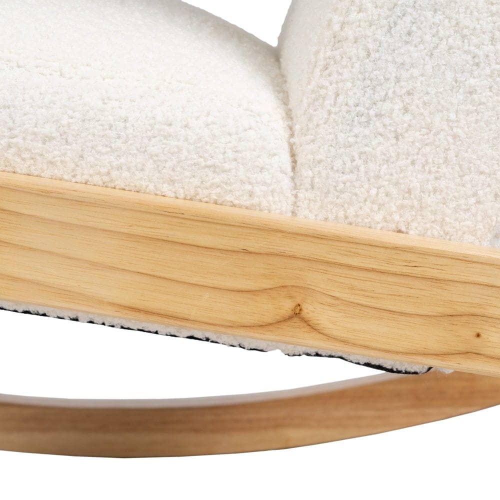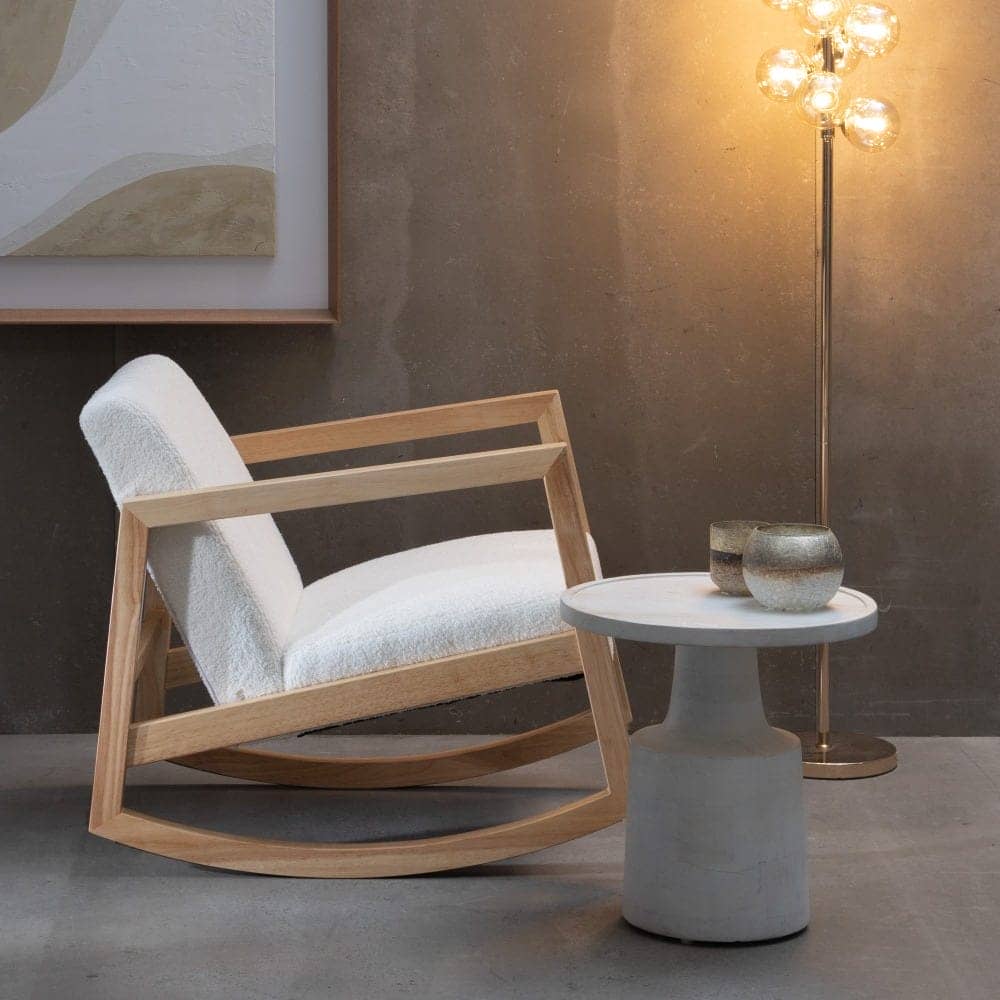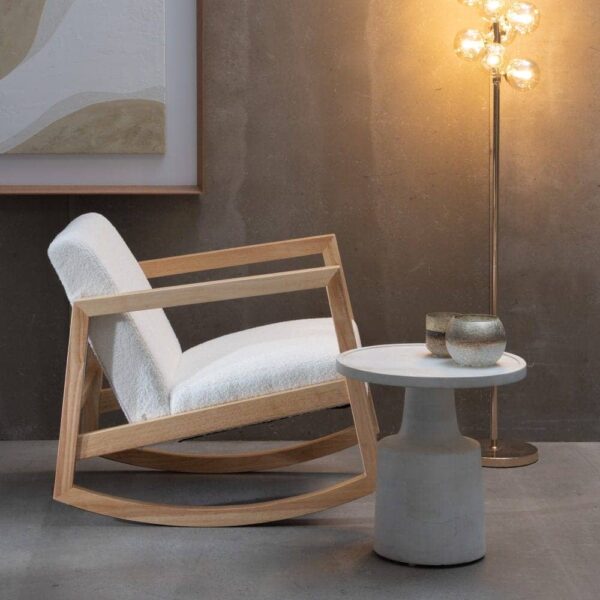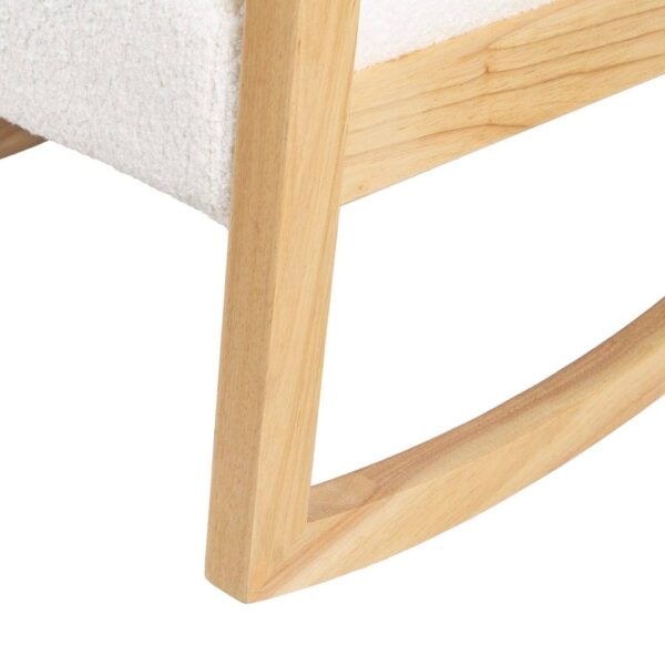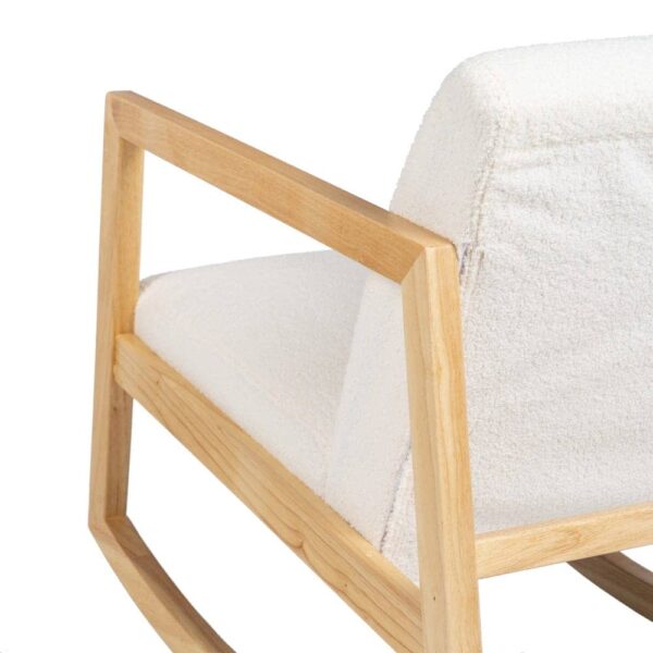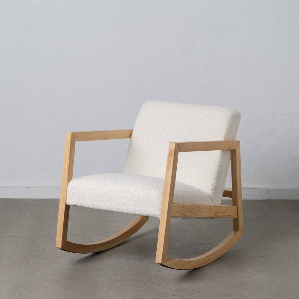 Esta mecedora está fabricada con madera de caucho de color natural, lo que le aporta resistencia y un acabado cálido y sofisticado. Su asiento, tapizado en tejido blanco de 100% poliéster, proporciona una textura suave y agradable. Con un asiento de 46 cm de altura, ancho de 52 cm y profundidad de 49 cm, ofrece una experiencia ergonómica perfecta. El respaldo, de 47 cm, asegura un soporte adecuado para relajarte cómodamente. Sus dimensiones generales (60x83x72 cm) la convierten en una opción ideal para salones, dormitorios o rincones de lectura. Su diseño atemporal se adapta a diferentes estilos decorativos, añadiendo un aire relajado y elegante. Perfecta para disfrutar de tus momentos de tranquilidad, esta mecedora combina funcionalidad, calidad y estilo. ¡Hazla tuya y transforma tu hogar con esta pieza única!