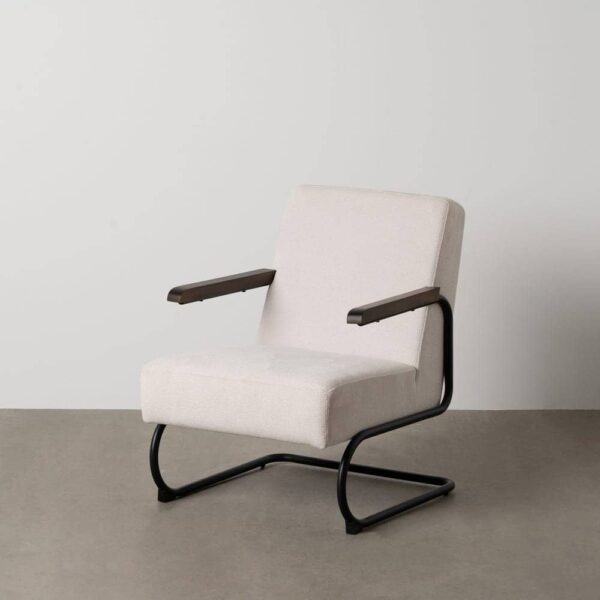 El sillón beige en tejido con estructura metálica combina funcionalidad y diseño contemporáneo para ofrecer una experiencia de confort inigualable. Tapizado en tejido 100% poliéster con gramaje de 145 g/m², aporta suavidad y durabilidad, mientras que el relleno de algodón y foam con densidad de 28 kg/m³ asegura un soporte cómodo y ergonómico. Sus dimensiones compactas (61x70x85 cm) y una altura de asiento de 45 cm lo hacen perfecto para cualquier rincón del hogar. El respaldo de 50 cm proporciona un apoyo ideal para la espalda, mientras que los reposabrazos, situados a 60 cm del suelo, añaden un extra de confort. La estructura metálica con patas de hierro negro garantiza estabilidad y un toque moderno, adaptándose a estilos decorativos contemporáneos o minimalistas. Cumple con la normativa EN12520:2015, asegurando calidad y resistencia. Aunque precisa montaje, su diseño único y no apilable lo convierten en una pieza exclusiva para transformar cualquier espacio. Haz de este sillón el protagonista de tu hogar y disfruta del equilibrio perfecto entre estilo y comodidad.