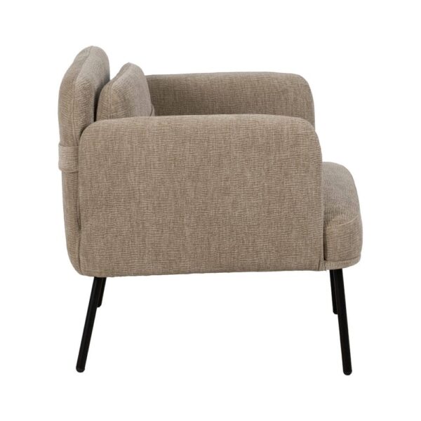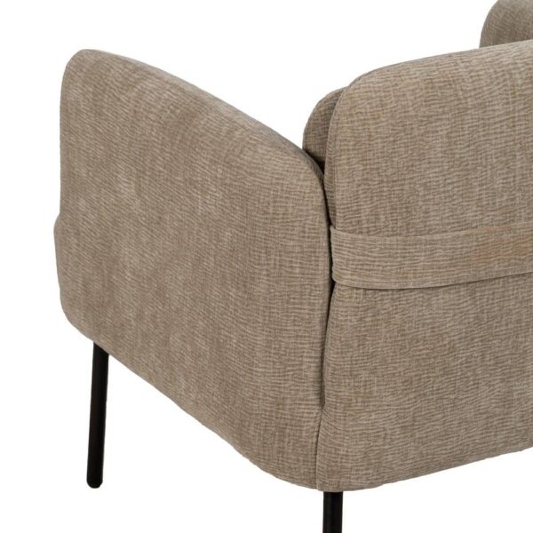 Aporta elegancia y funcionalidad a tu hogar con este sillón beige. Su diseño moderno, tapizado de alta calidad y patas metálicas lo convierten en una pieza versátil y duradera. Haz de tu salón un lugar único y acogedor.