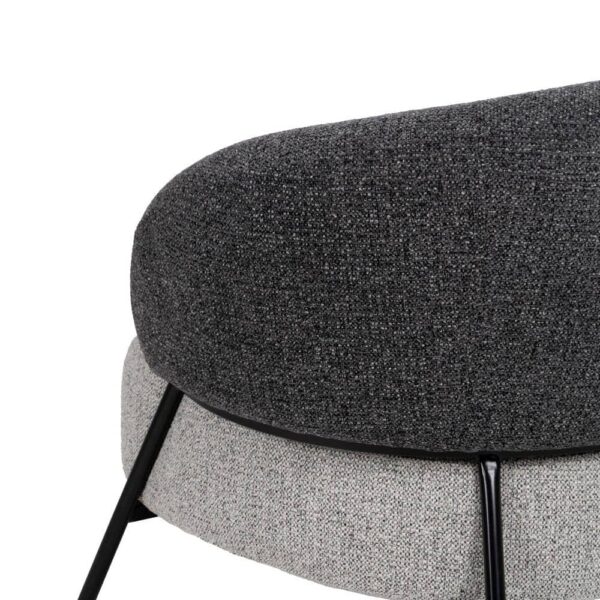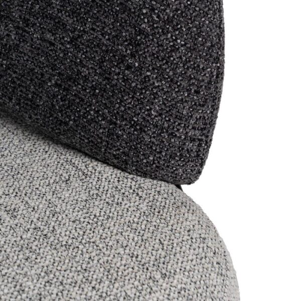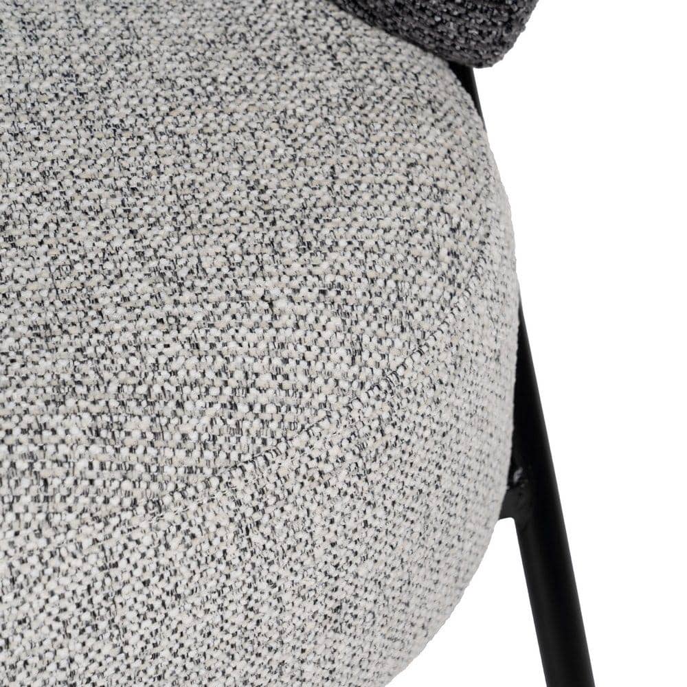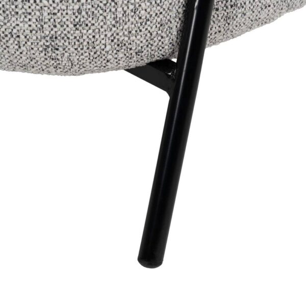 Material: tejido (100% poliéster). Estructura: madera contrachapada, hierro. Relleno: foam, densidad 25kg. Altura asiento: 38cm. Ancho asiento: 54cm. Profundidad asiento: 59cm. Altura respaldo: 41cm. Altura patas: 17cm. Peso máximo soportado: 120kgs. Cumple la normativa EN16139:2013.