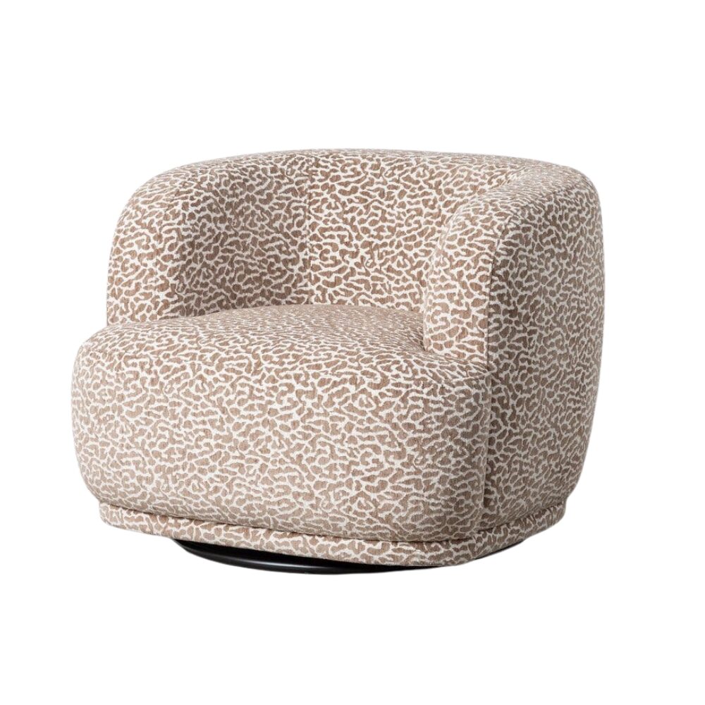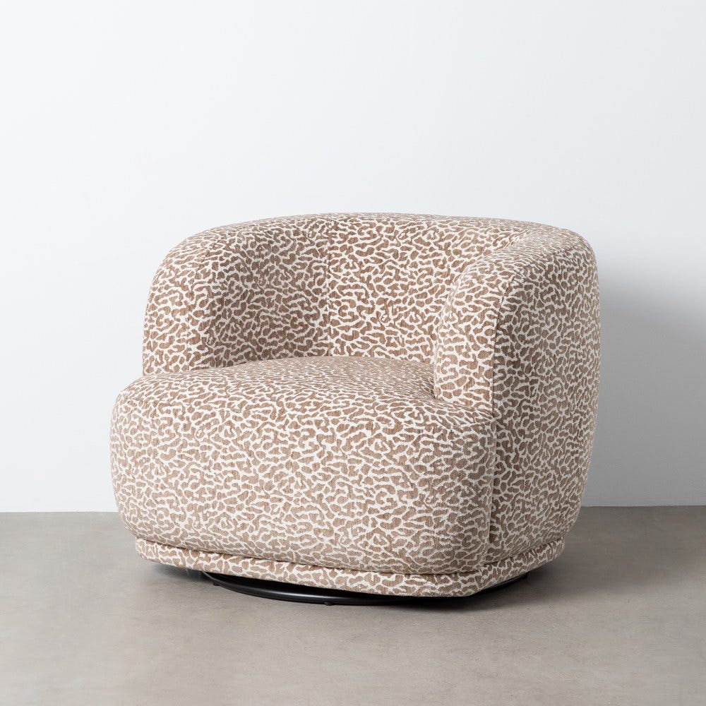 Sillón giratorio gris tapizado en tela para salón – 89 x 87 x 71 cm