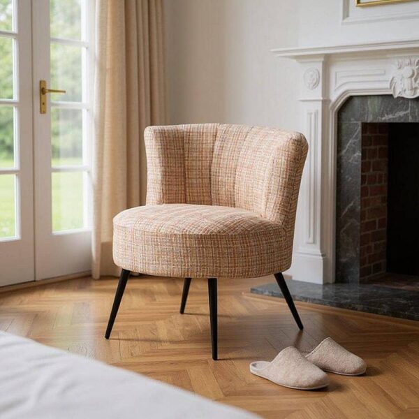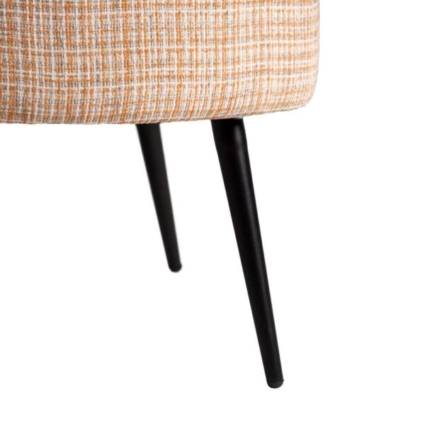 Material tejido: poliéster. Estructura: Plywood. Relleno: Foam,PU. Densidad 30kg/m3. Gramaje:450gr/m2. Patas: Madera de caucho. Altura asiento: 42cm. Altura respaldo desde asiento: 32cm. Máximo peso soportado: 200kg. No desenfundable. Para montar.