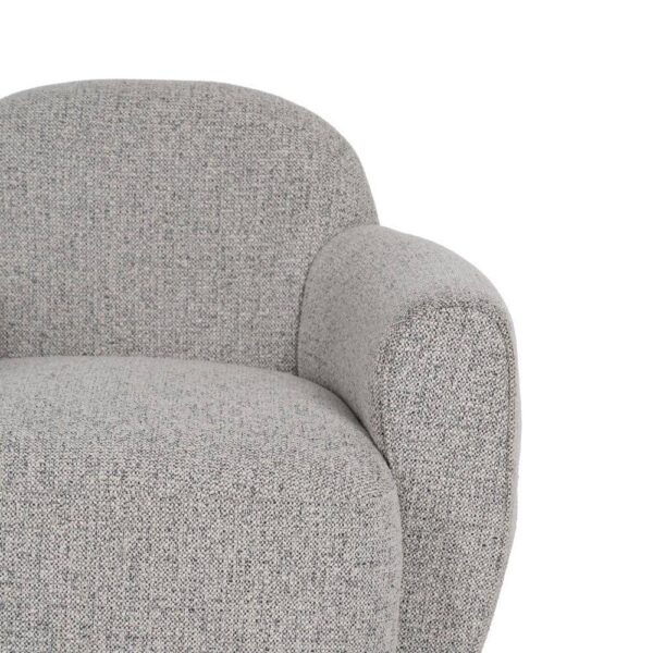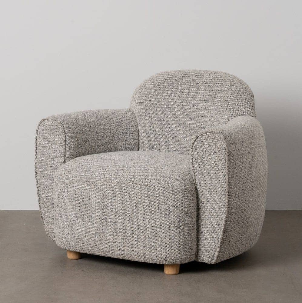 Material: tejido (100% poliéster). Estructura: madera de pino, madera contrachapada. Relleno: foam, densidad 25. Altura asiento: 41cm. Ancho asiento: 51cm. Profundidad asiento: 58cm. Altura respaldo: 34cm. Altura reposabrazos: 34cm. Máximo peso soportado: 120kgs. Cumple la normativa EN12520 (uso doméstico).
