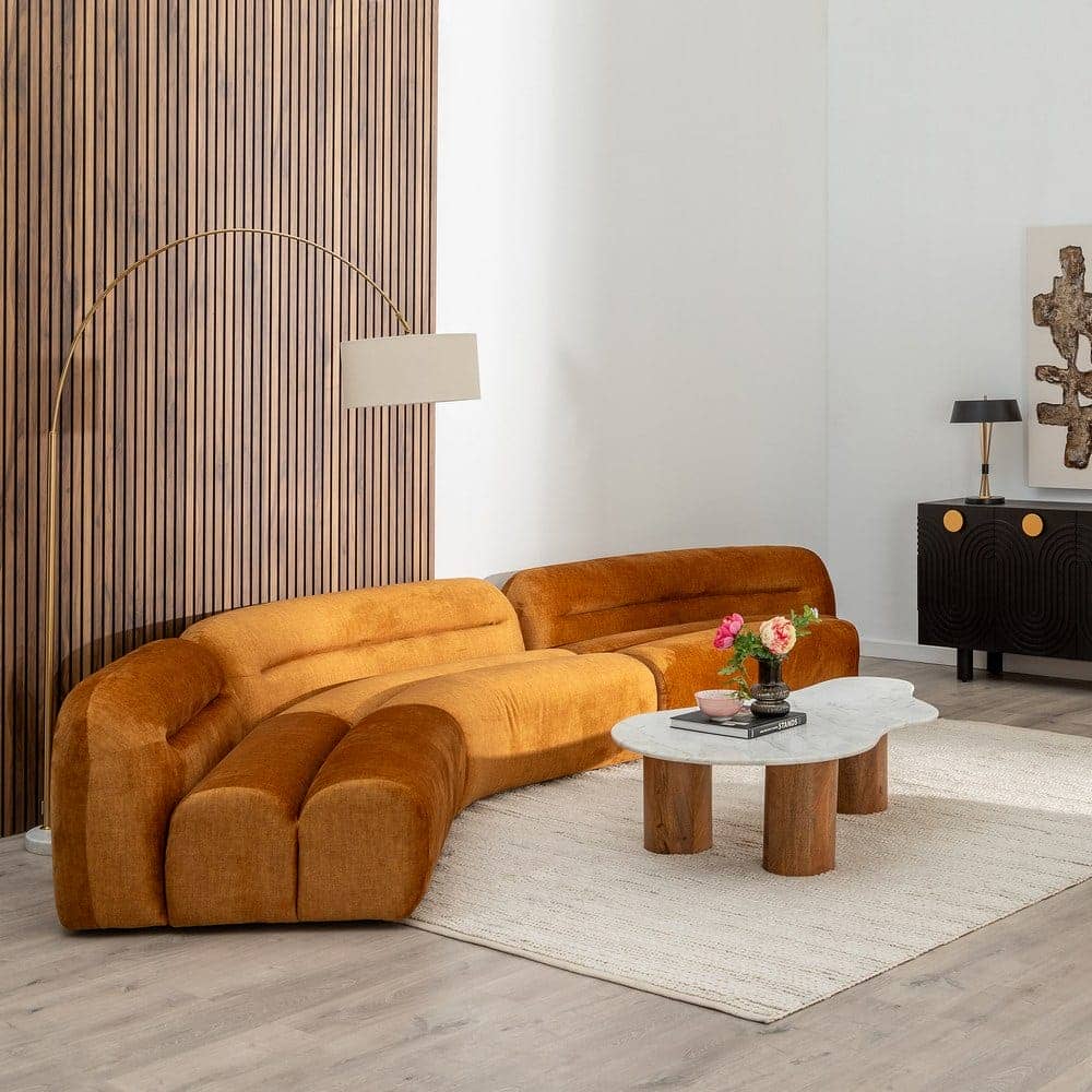 El módulo curva izquierda mostaza, con medidas de 155 x 94 x 64 cm, está diseñado para aportar estilo y confort a cualquier salón. Fabricado con una resistente estructura de madera contrachapada y relleno de foam de 25 kg/m³, garantiza durabilidad y comodidad. Su asiento, de 40 cm de altura, y respaldo, de 30 cm, ofrecen una experiencia ergonómica ideal para el descanso. Tapizado en 100% poliéster, este módulo es suave al tacto, resistente al uso diario y fácil de mantener. Su diseño curvo permite integrarlo en configuraciones modulares, adaptándose a salones modernos o eclécticos. Además, cumple con la normativa EN12520:2016, garantizando calidad y seguridad. Su color mostaza vibrante aporta calidez y frescura, convirtiéndolo en una pieza imprescindible para destacar cualquier ambiente. Crea espacios dinámicos y llenos de personalidad con el módulo curva izquierda mostaza.