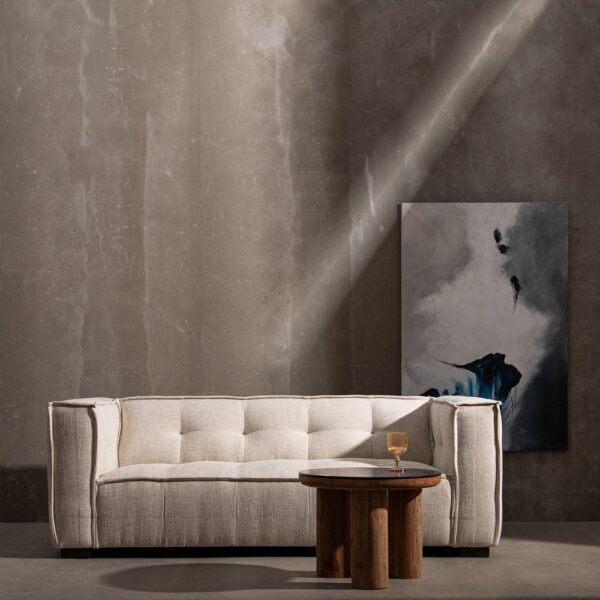 Sofá 3 plazas beige de tela modelo Sibaris para salón – 218 x 102 x 77 cm