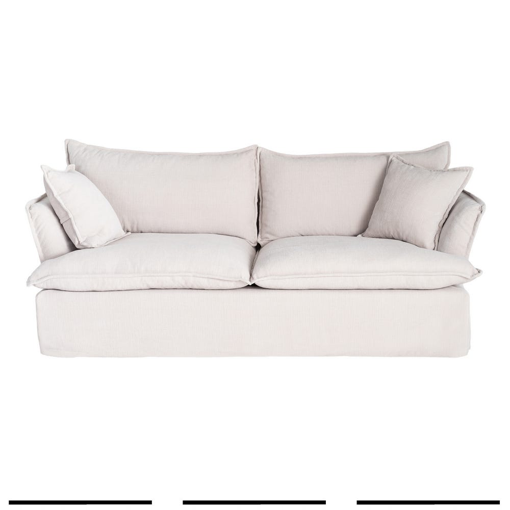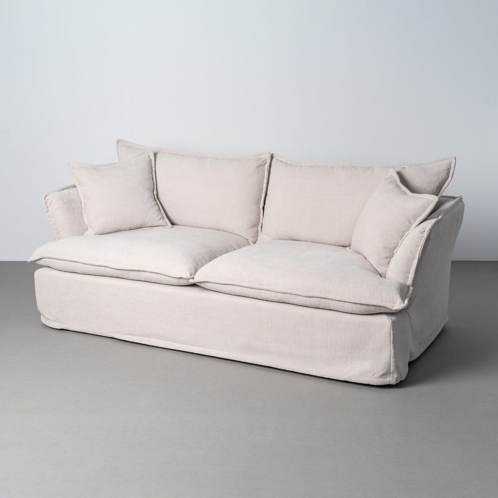 Sofá 3 plazas color crema de tela para salón moderno – 221 x 103 x 72 cm