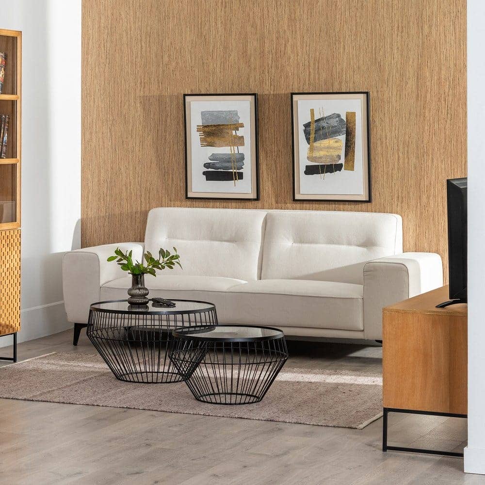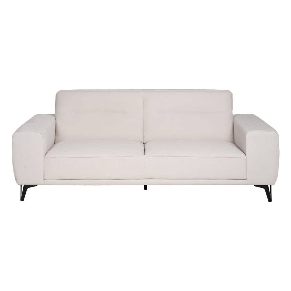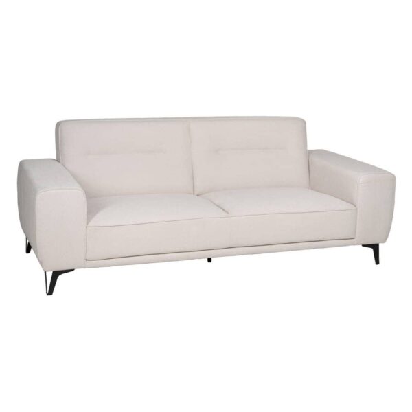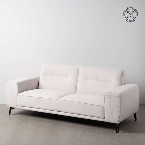 El sofá 3 plazas crudo, con unas dimensiones de 213 x 87 x 85 cm, está diseñado para destacar en cualquier espacio. Su estructura combina tejido de alta calidad (93% poliéster y 7% nilón) con una base metálica, garantizando durabilidad y estabilidad. Su asiento, de 40 cm de altura y 60 cm de profundidad, ofrece un soporte cómodo, complementado por un respaldo alto de 50 cm y reposabrazos de 20 cm desde el asiento. Las patas, de 14,5 cm de altura, aportan un toque moderno y ligero al diseño. Aunque no desenfundable, su tapizado es resistente y fácil de mantener. Su amplio asiento de 168 cm de ancho lo convierte en una opción ideal para compartir momentos especiales en familia o con amigos. Este sofá combina estilo minimalista con funcionalidad, convirtiéndolo en la pieza perfecta para cualquier salón contemporáneo. Redefine la elegancia en tu hogar con el sofá 3 plazas crudo, diseñado para inspirar.