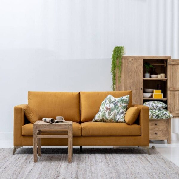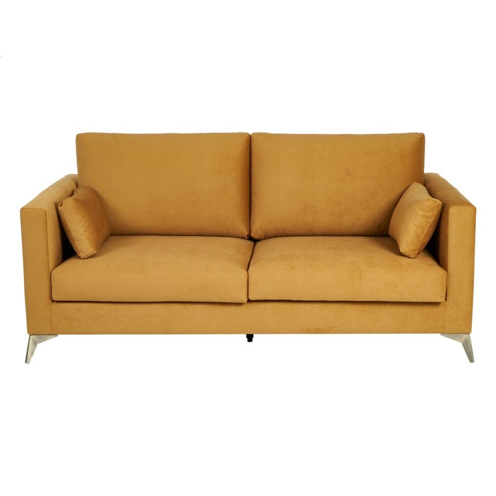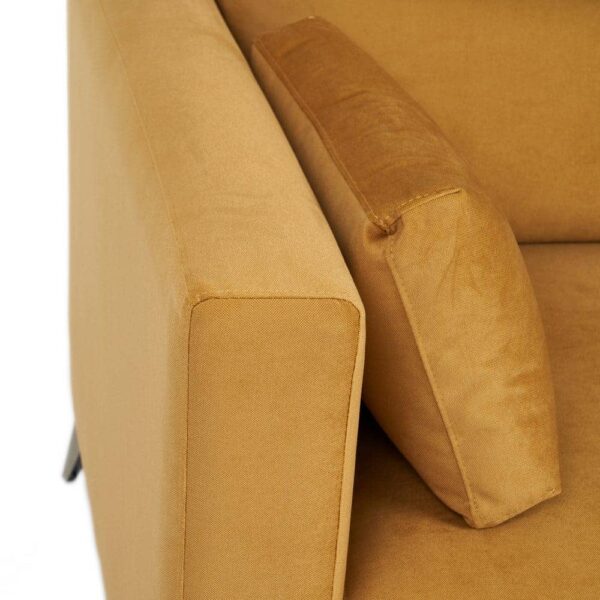 Este sofá de 3 plazas mostaza tiene todo lo que necesitas para un confort total. Con un asiento de foam de 28kg/m³ y almohadones de respaldo rellenos de fibra, cada rincón de este sofá está pensado para ofrecer el máximo soporte. Su diseño desenfundable permite un fácil lavado, y sus cojines de respaldo y asiento cuentan con cremallera para mayor comodidad. Las medidas de este sofá son 200 cm x 98 cm x 97 cm, con una altura de asiento de 45 cm y un profundo de 59 cm, ideales para relajarte después de un largo día. Además, incluye dos cojines laterales de 47×30 cm para mayor confort. El tejido de 100% poliéster es fácil de mantener y, con su color mostaza vibrante, aportará luminosidad y estilo a tu salón. Haz de tu hogar un lugar más acogedor y moderno con este sofá de diseño único y funcional.