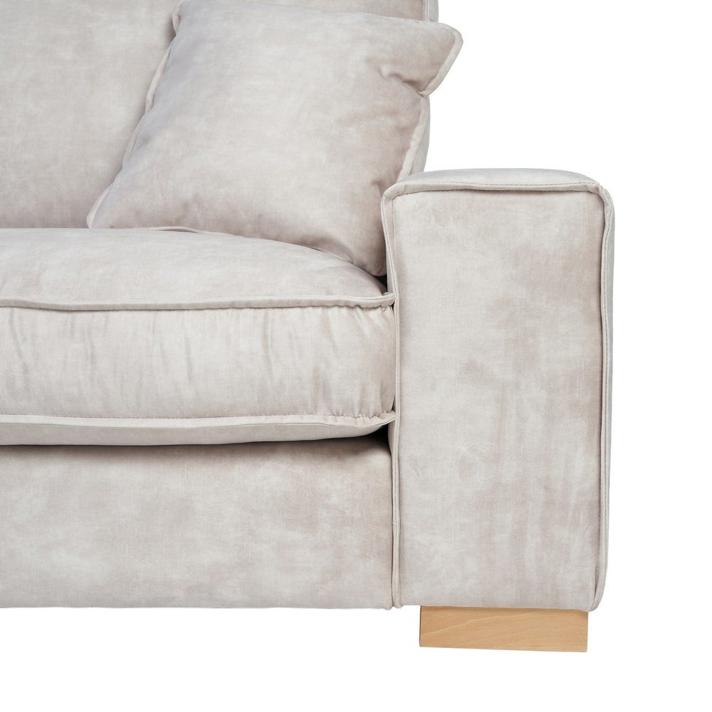 Sofá 4 plazas beige de tela para salón amplio – 266 x 93 x 97 cm