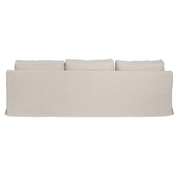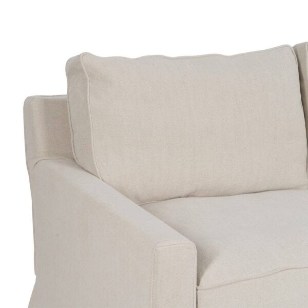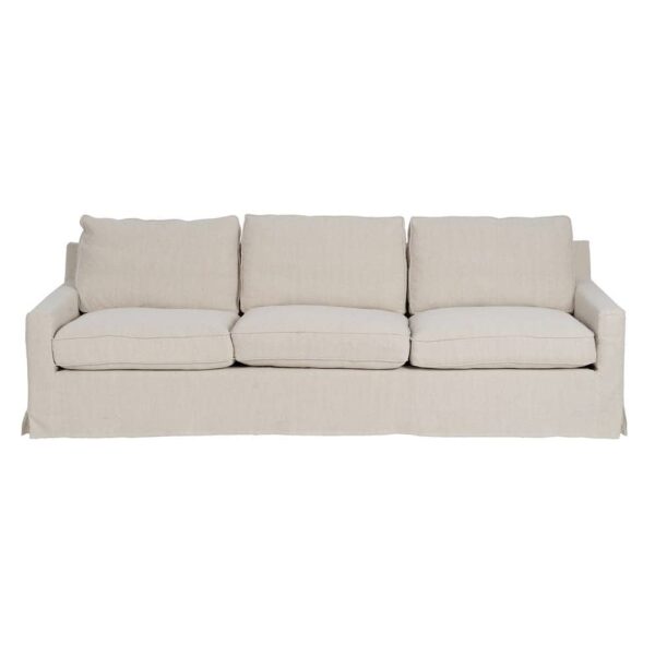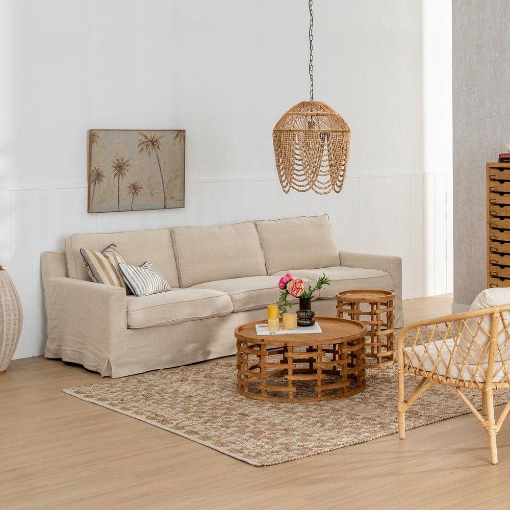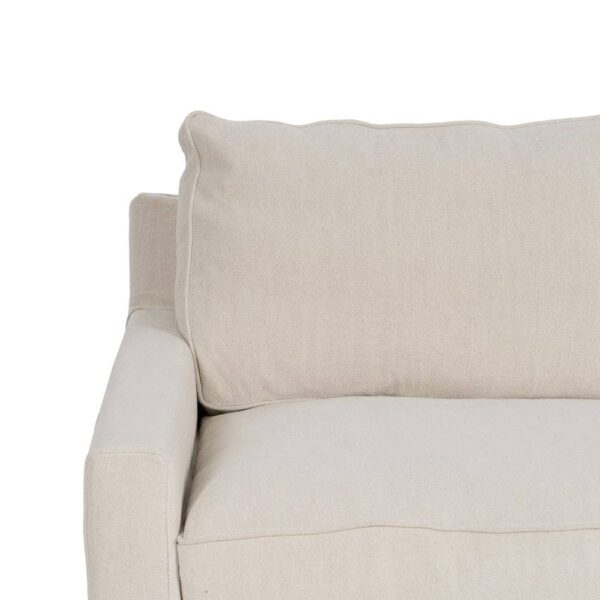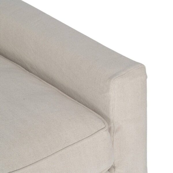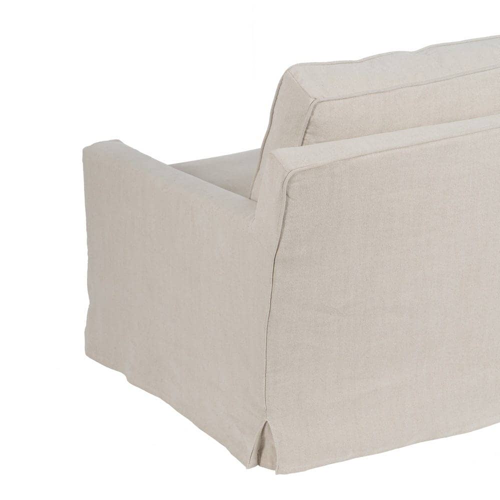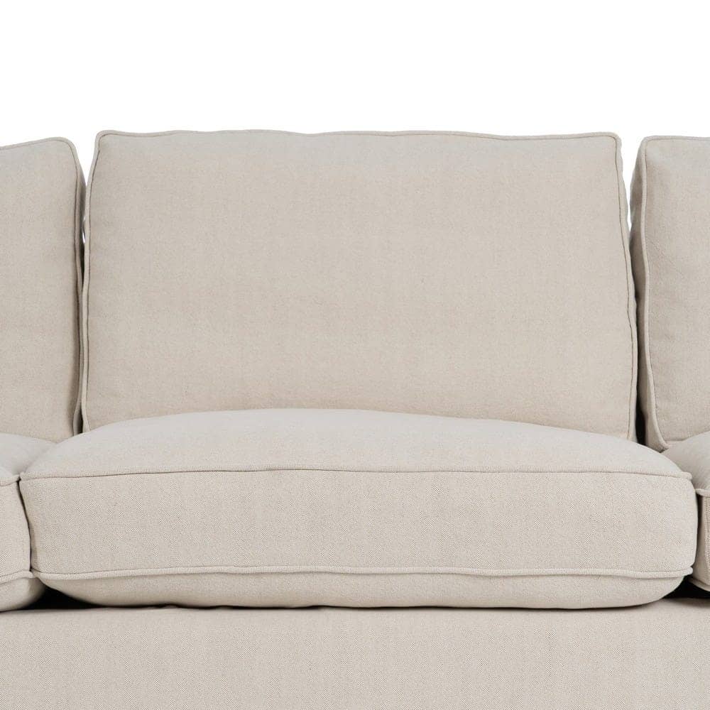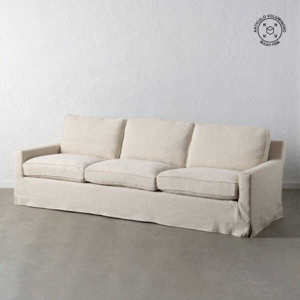 Con unas medidas de 260 x 100 x 83 cm, el sofá 4 plazas crema está diseñado para proporcionar confort y estilo en igual medida. Su tapizado en una exclusiva mezcla de 50% lino y 50% algodón ofrece una textura suave y transpirable, perfecta para cualquier estación. La estructura de madera de pino garantiza estabilidad y durabilidad, soportando un peso máximo de 350 kg. Los cojines, rellenos de foam de alta densidad (39 kg/m³) y pluma, proporcionan una sensación de lujo y comodidad. Además, los cojines cuentan con cierre de cremallera para facilitar su limpieza. Las patas en color negro requieren un sencillo montaje y añaden un contraste elegante al diseño. Con una altura de asiento de 47 cm y reposabrazos de 56 cm, este sofá combina ergonomía y sofisticación. Cumple con la normativa UNE-EN 12520:2016, asegurando calidad y seguridad. Redefine tu salón con este sofá de 4 plazas, la pieza imprescindible para grandes reuniones o momentos de relax.