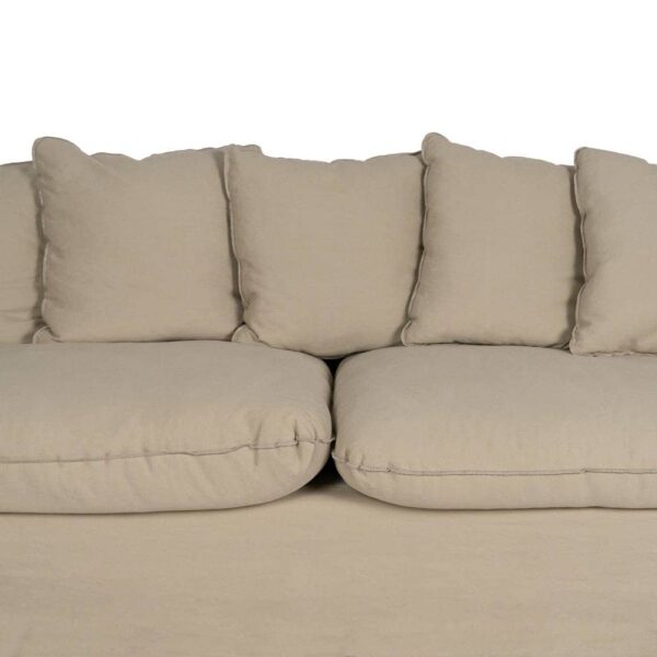 Con unas dimensiones de 216 x 94 x 93 cm, este sofá combina una estructura sólida de madera de pino con un tapizado en una mezcla de 35% lino y 65% algodón, ideal para un acabado suave y duradero. Los cojines, rellenos de foam y pluma y con una densidad de 39 kg/m³, ofrecen un soporte ergonómico y una comodidad inigualable. Además, los 5 cojines de 50×50 cm y el cojín de 60×40 cm incluidos añaden un toque decorativo y funcional. Su diseño desenfundable y su cierre con cremallera facilitan el mantenimiento, asegurando un sofá impecable en todo momento. Las patas en color negro aportan un contraste elegante, mientras que su altura del asiento de 52 cm y reposabrazos de 67,5 cm garantizan comodidad en cada uso. Este sofá cumple con la normativa UNE-EN 12520-2016, reflejando su calidad y durabilidad. Atrévete a disfrutar del confort y estilo exclusivo que este sofá beige de 3 plazas tiene para ofrecerte.