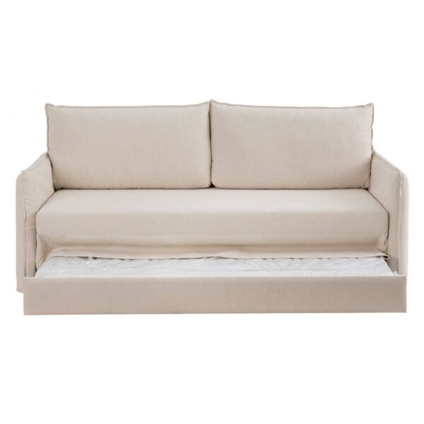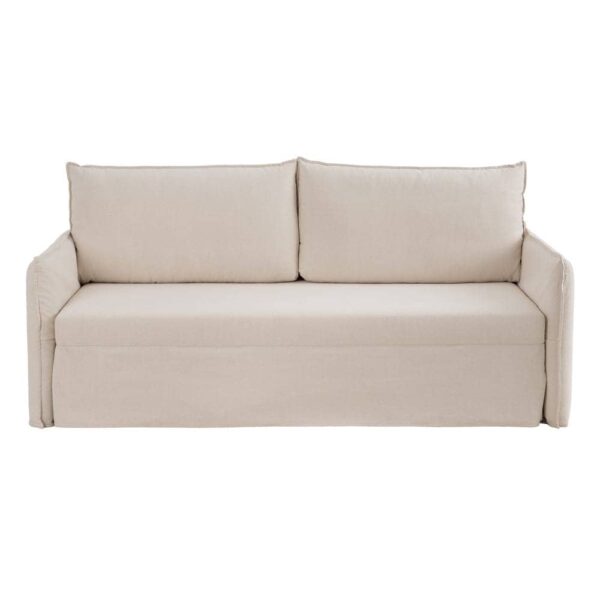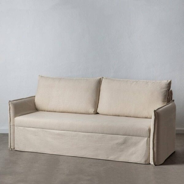 El sofá cama nido beige destaca por su versatilidad, convirtiéndose en una cama de 180x80x10cm con colchón de densidad 30kg/m³, ideal para visitas o noches de descanso. Su estructura completamente desenfundable y desmontable facilita su mantenimiento. Las medidas del asiento son de 191cm de ancho y 57cm de profundidad, mientras que los cojines del respaldo cuentan con unas medidas de 54x95x20cm, garantizando confort y soporte. Las patas, con una altura de 11cm, proporcionan estabilidad y un diseño ligero. El sofá está diseñado para ser lavado en seco y tiene un profundo total de 1,83m una vez abierto como cama. Su color beige y elegante tejido lo convierten en una pieza clave para tu hogar. Disfruta del mejor descanso sin sacrificar el estilo con este sofá cama multifuncional.