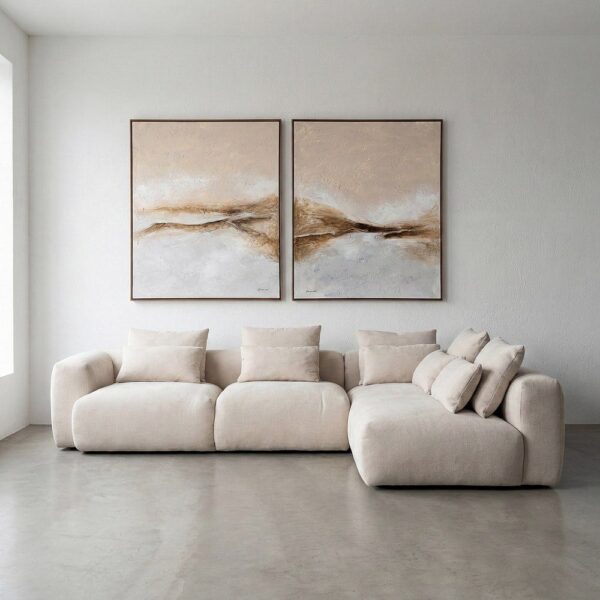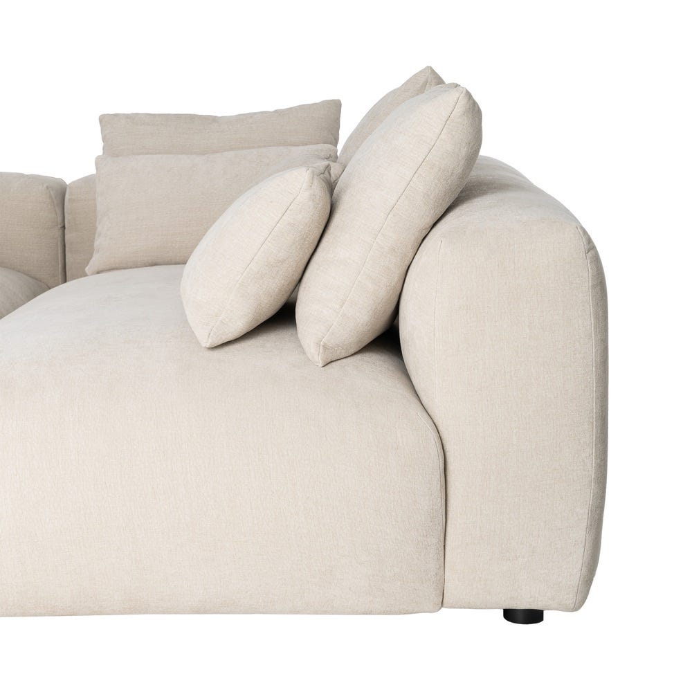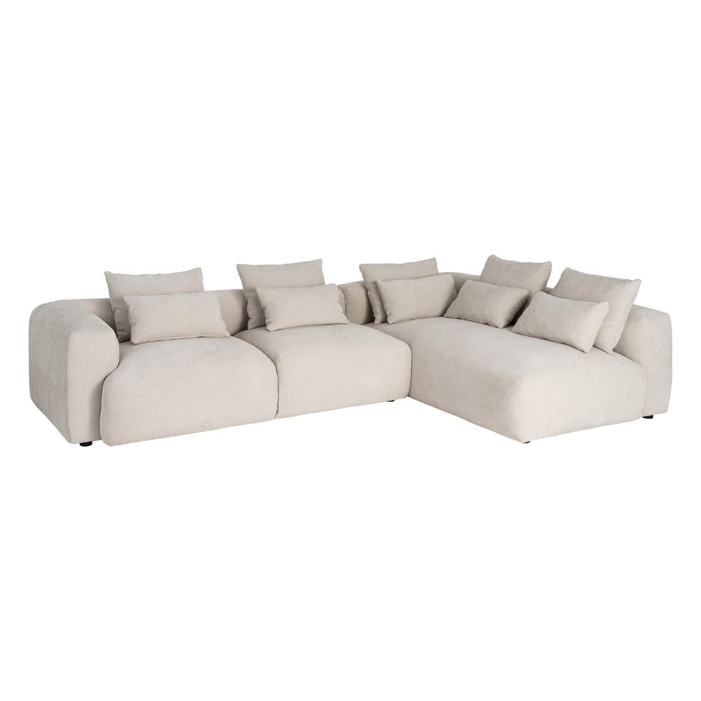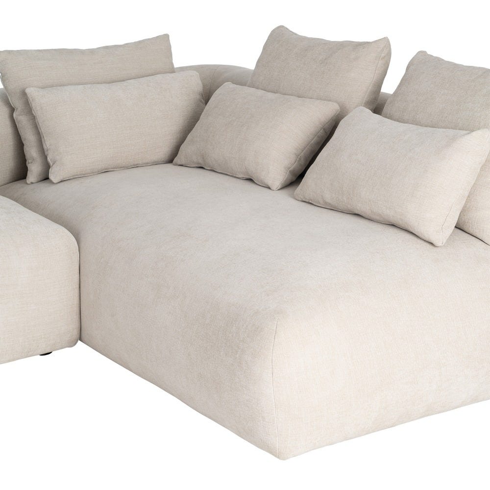 Sofá chaise longue derecha crema de tela para salón – 307 x 202 x 81 cm
