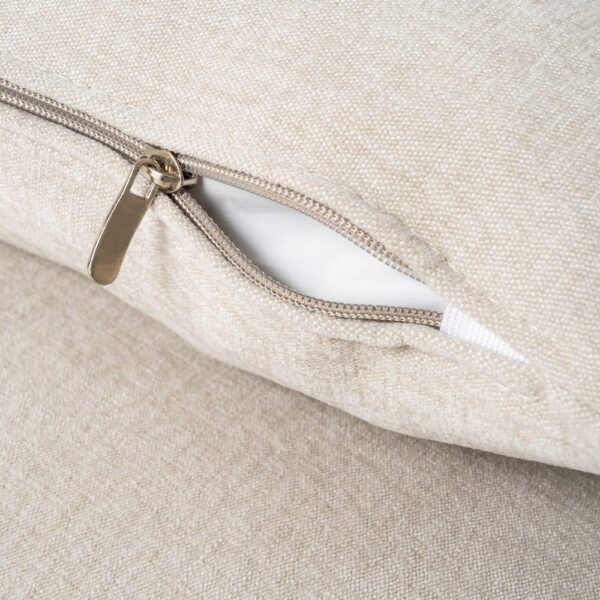 Material: 97% poliéster – 3% lino. Patas: madera de caucho Asiento y trasera: Foam 32kgr./m3 y pluma. Respaldo: fibra y pluma. Medida cojines: respaldo 60×50 – decoración 57x33cm. Cojines desenfundables con cremallera. Medida sofá 3 plazas: 1.96×1.05x81cm. Medida chaise: 1.16×2.20x81cm. Altura asiento: 40cm. Altura reposabrazos desde el suelo: 60cm. Cumple normativa: EN12520:2025