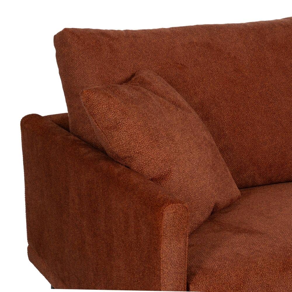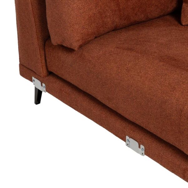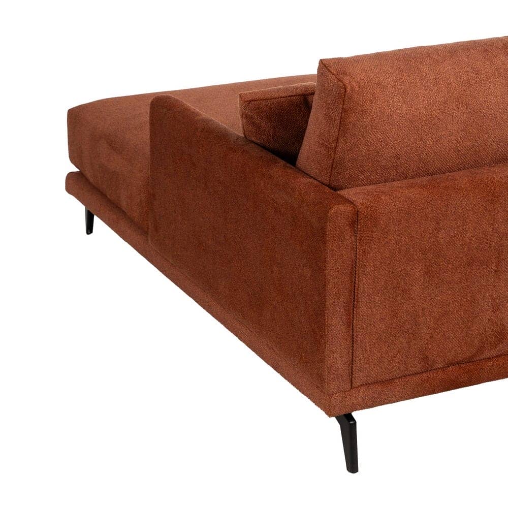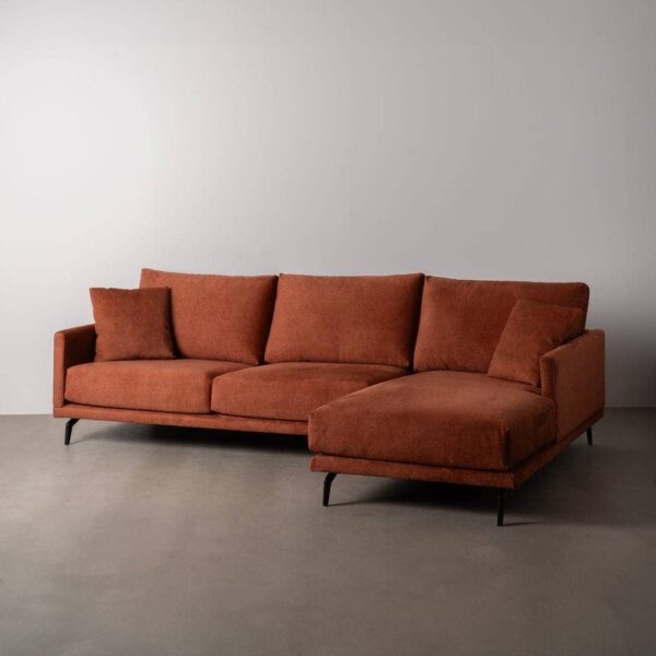 Tejido: Altura asiento: 44cm. Profundidad asiento: 63/130cm. Ancho asiento: 264cm. Altura reposabrazos: 20cm. Altura respaldo: 50cm. Altura patas: 16cm. Cojines desenfundables. Estructura madera de pino macizo recubierto de goma espuma. Asientos de goma espuma de 32kg + 5cm de súpersuave recubierta de fibra siliconada. Patas metálicas.