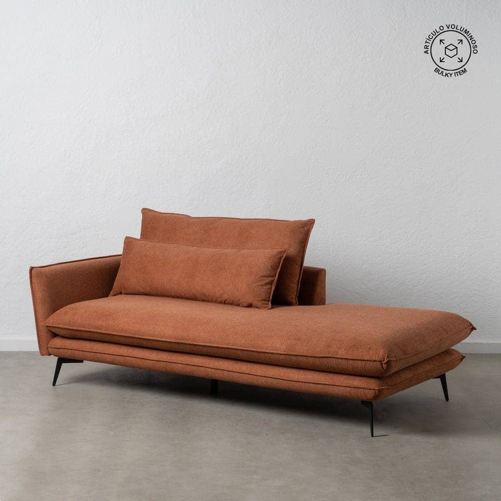El sofá chaise longue marrón es la elección perfecta para quienes buscan diseño contemporáneo y máxima comodidad. Con una estructura de madera conglomerada y patas de hierro que aportan estabilidad, este sofá destaca por su relleno de foam de 30 kg/m³, ideal para un soporte firme y acogedor. Su tapizado de alta calidad (94% poliéster y 6% nylon) tiene un gramaje de 330 gr/m², lo que garantiza resistencia y durabilidad. Los cojines, diseñados con cremalleras discretas, son desenfundables para facilitar la limpieza. Con medidas de 210 x 100 x 90 cm, y una profundidad variable que llega hasta 100 cm, este chaise longue se adapta a tus momentos de relax o reuniones familiares. Su cálido tono marrón combina a la perfección con ambientes modernos e industriales, aportando un aire sofisticado a cualquier estancia. Haz de tu salón un lugar donde el diseño y el confort se encuentren.