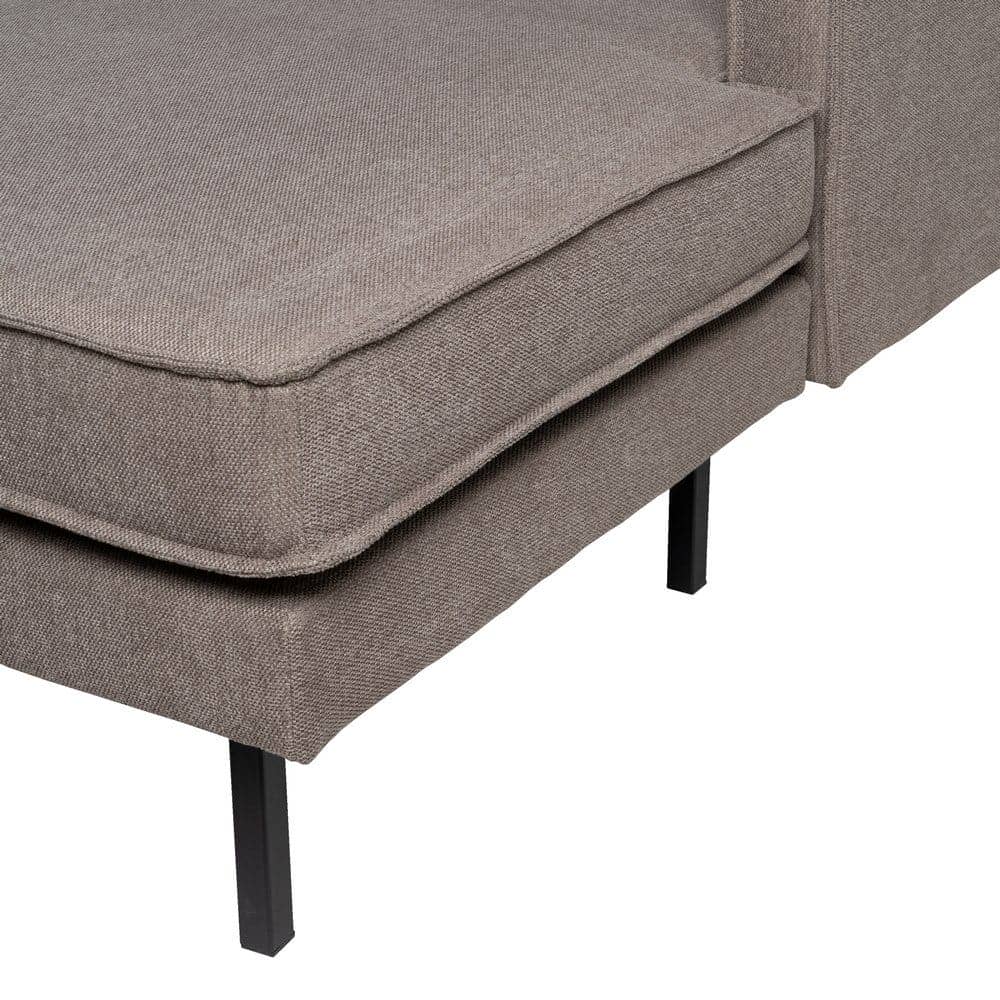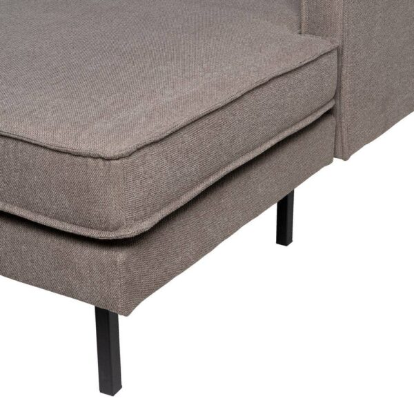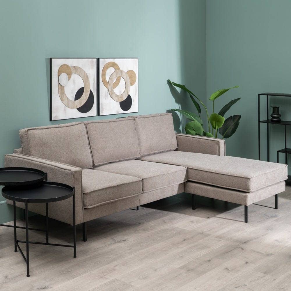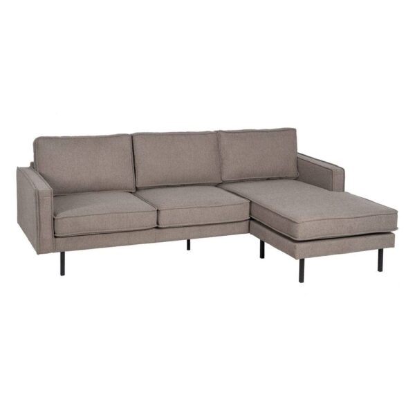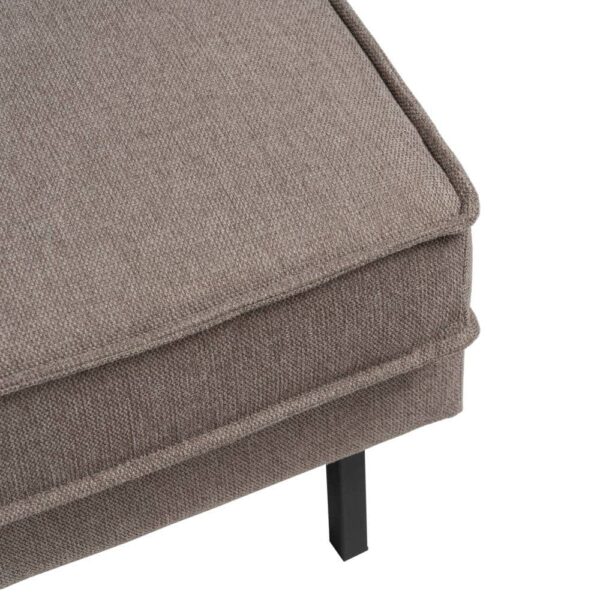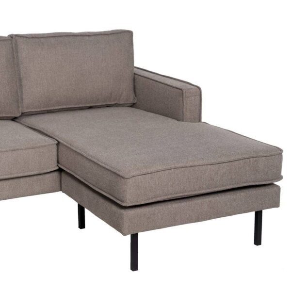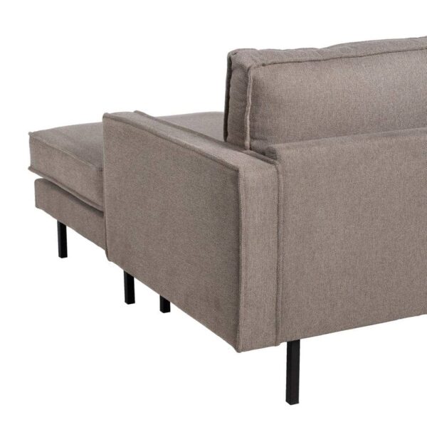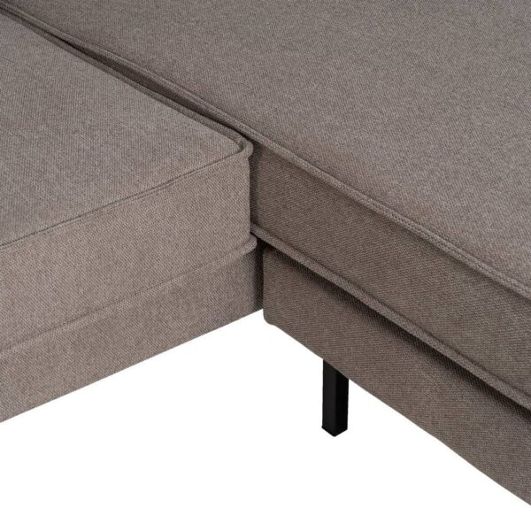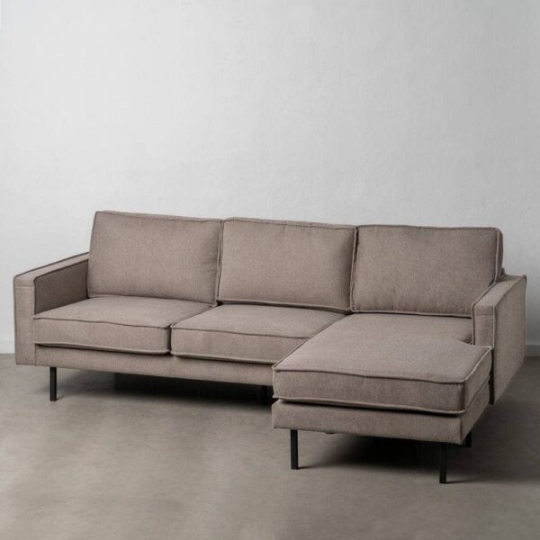 El sofá chaise longue taupe mide 235 cm x 155 cm x 87 cm en total, con una superficie de chaise longue de 82×144 cm, ofreciendo un gran espacio para descansar. El asiento tiene una altura de 45 cm y una profundidad de 48 cm (sin el módulo Chaise Longue), lo que proporciona un confort óptimo. El respaldo tiene una altura de 48 cm y los cojines del asiento y respaldo son desenfundables con cremallera, lo que facilita su limpieza. La estructura de madera de eucalipto y las patas de metal aseguran durabilidad y estabilidad. Este sofá soporta hasta 150 kg por asiento y cumple con la normativa UNE-EN 12520:2015, garantizando su calidad y seguridad. Además, se puede limpiar en seco y es resistente a manchas. Convierte tu salón en el lugar más acogedor y moderno con este sofisticado sofá chaise longue.