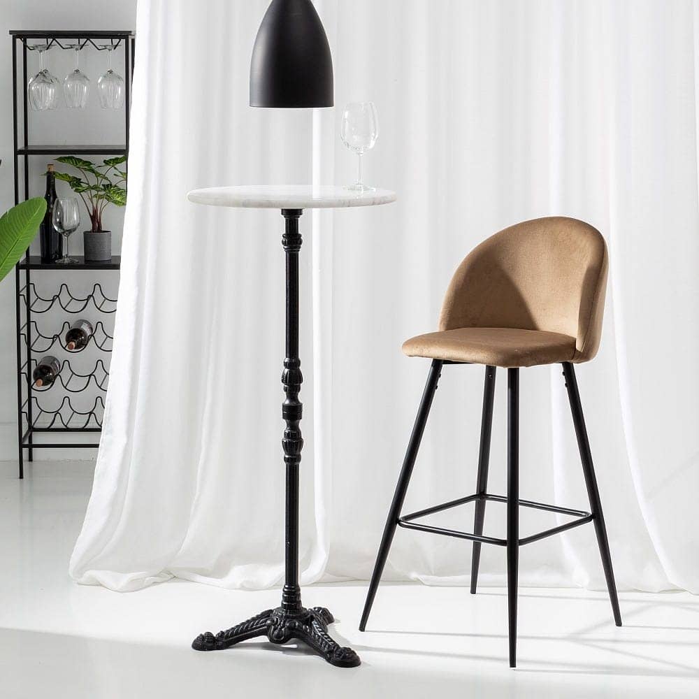 Aporta elegancia y funcionalidad a tu espacio con este pack de 2 taburetes altos marrón. Tapizados en tejido resistente y con patas de metal, su diseño ergonómico ofrece confort y estilo. Altura de asiento de 75 cm, ideal para barras o mesas altas. ¡Hazlos tuyos ahora!