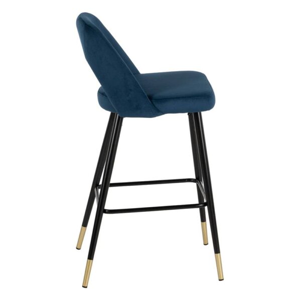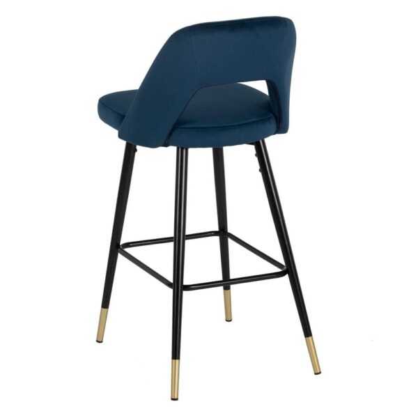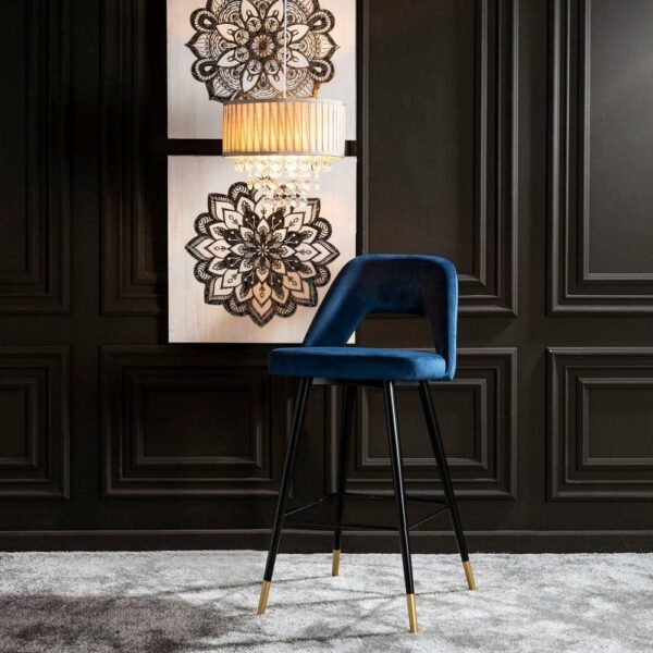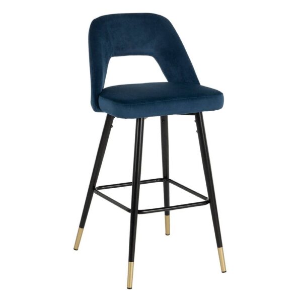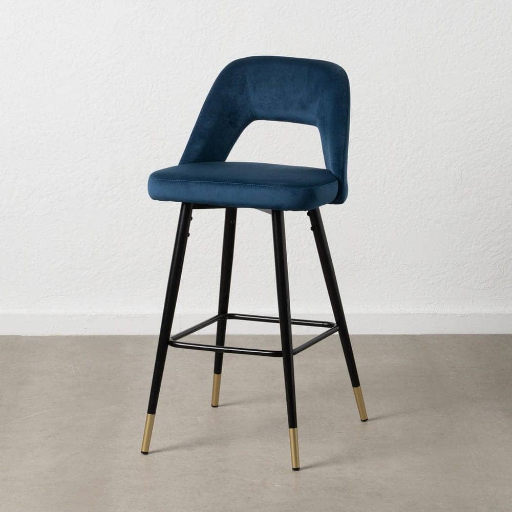 Añade un toque de elegancia y modernidad con este pack de 2 taburetes azules. Su diseño sofisticado, con asiento de tejido suave y patas metálicas negras con detalles dorados, aporta estilo y confort a cualquier espacio. Altura de asiento de 75 cm, ideal para barras o mesas altas. ¡Hazlos tuyos!