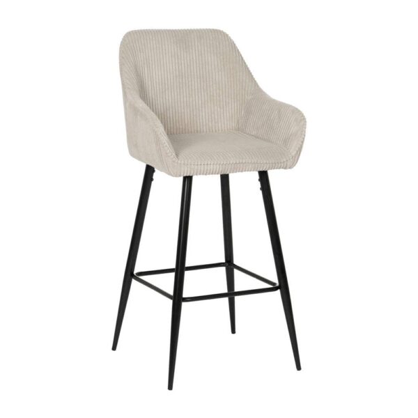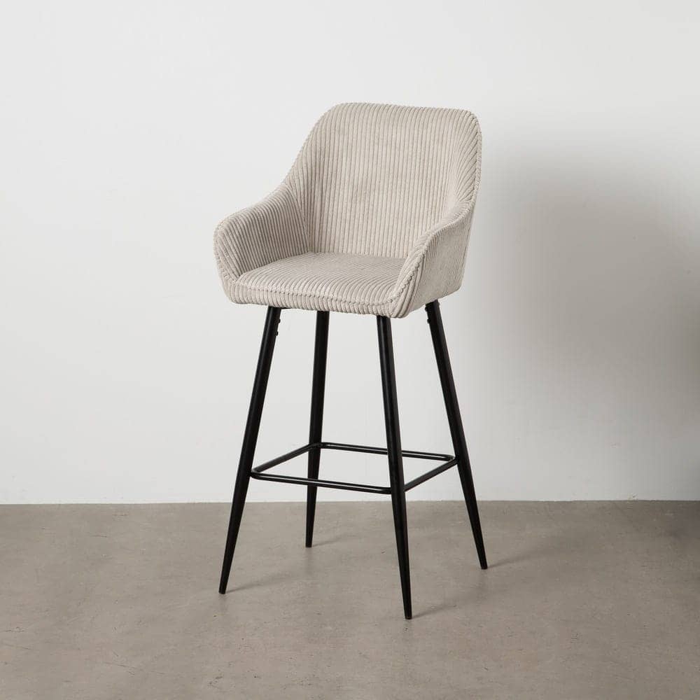 Disfruta de la combinación perfecta entre elegancia y comodidad con este pack de 2 taburetes beige. Su diseño con asiento en pana y patas de hierro es ideal para dar un toque sofisticado a tu barra o comedor. Con una altura de asiento de 75 cm y respaldo ergonómico, ofrecen confort y estilo en cada detalle. ¡Listos para usar, sin necesidad de montaje!