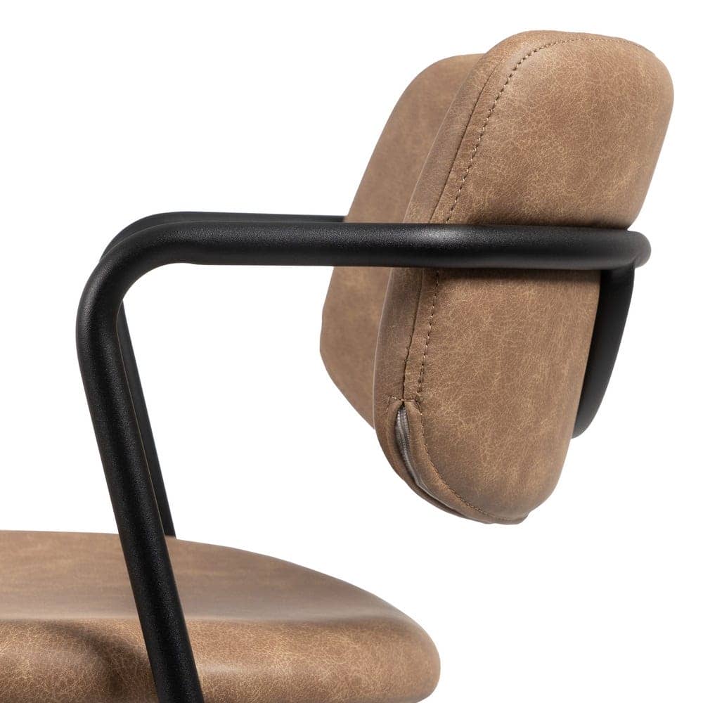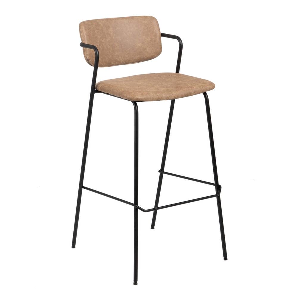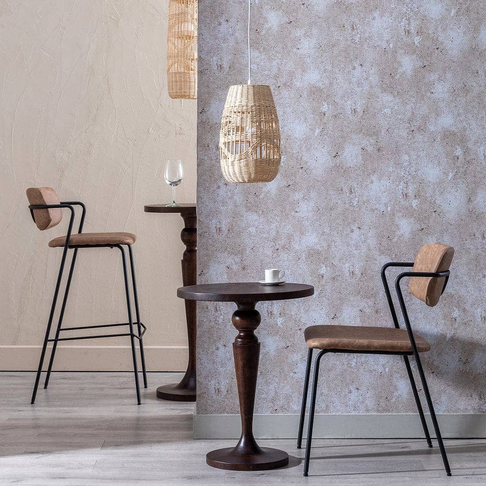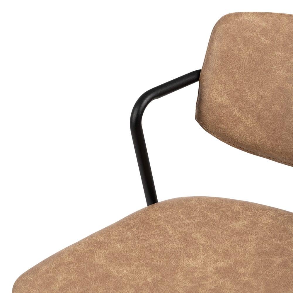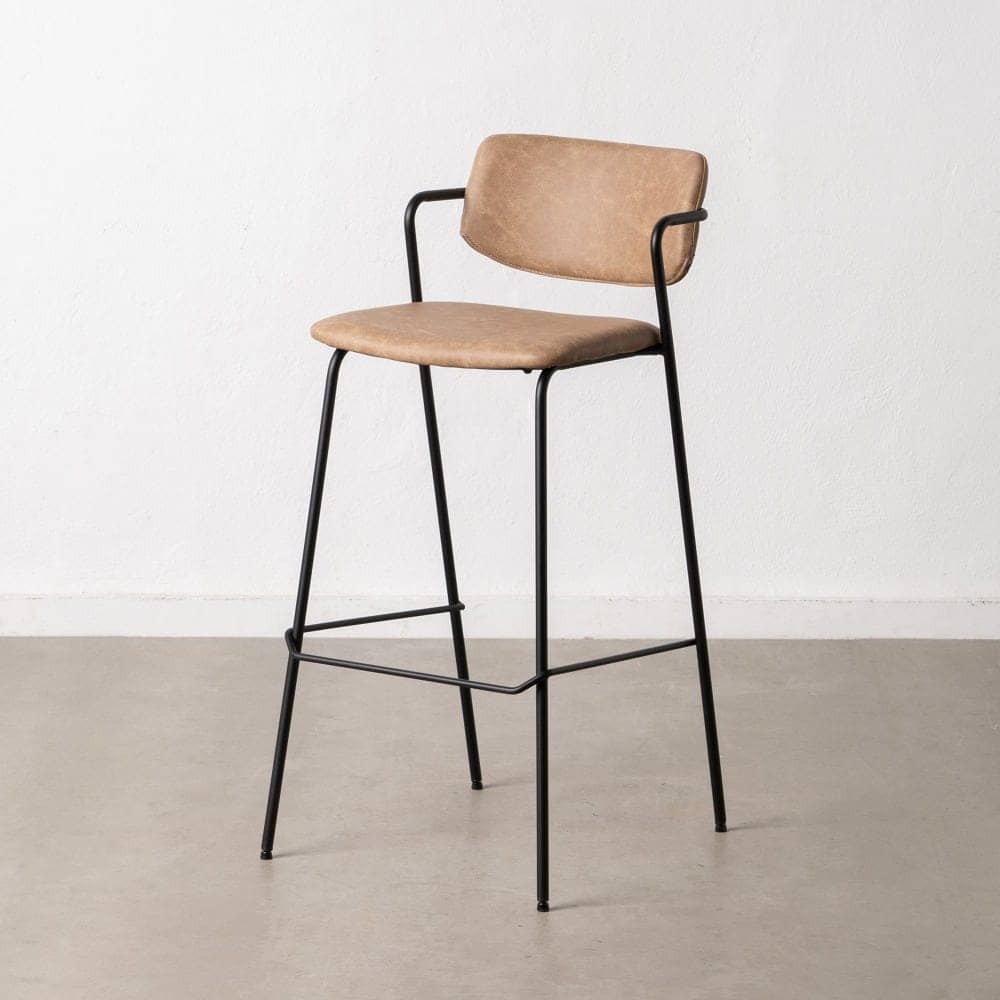 Aporta estilo y funcionalidad a tu hogar con este pack de 2 taburetes beige de piel sintética. Su diseño ergonómico con respaldo curvado y reposabrazos garantiza comodidad en cada uso. La estructura metálica aporta estabilidad y resistencia, siendo el complemento ideal para barras o mesas altas.