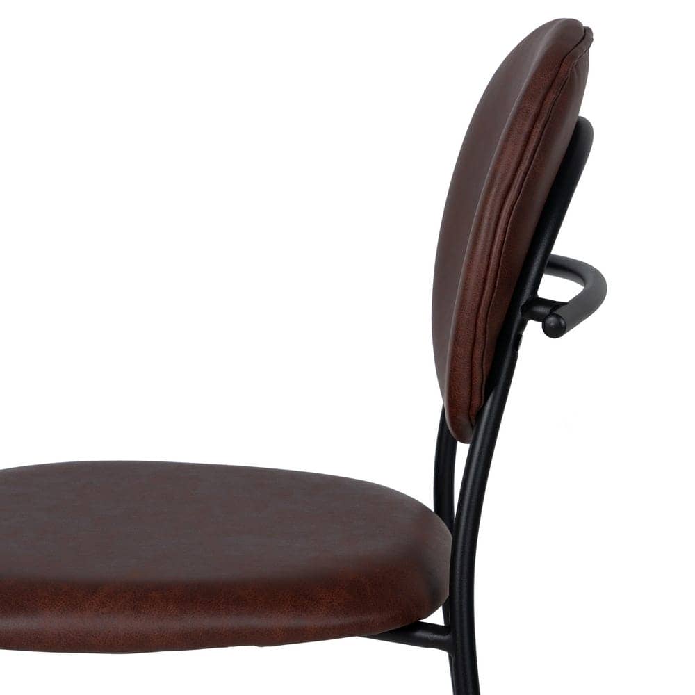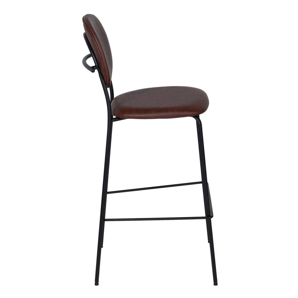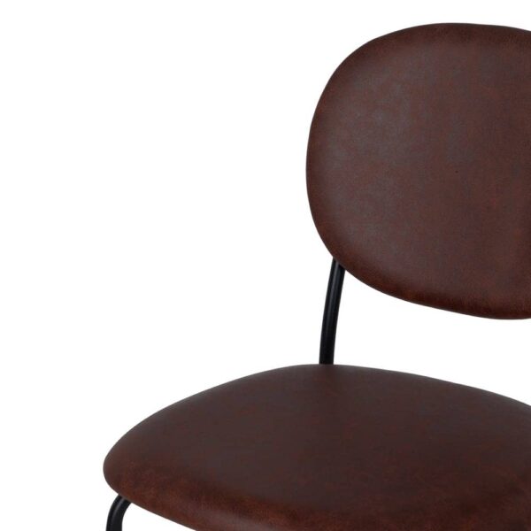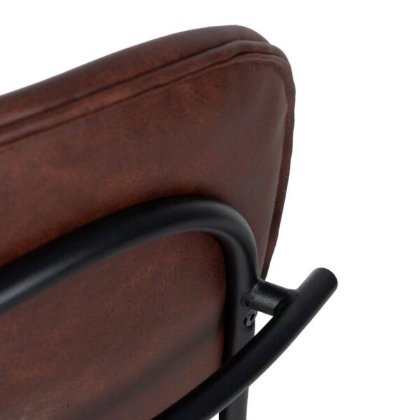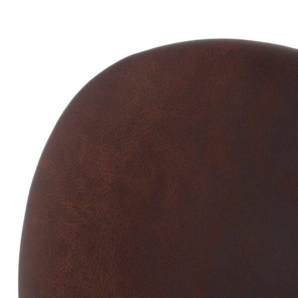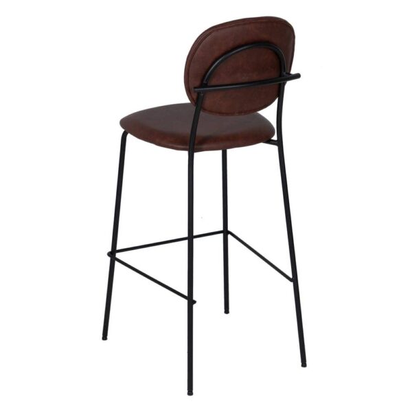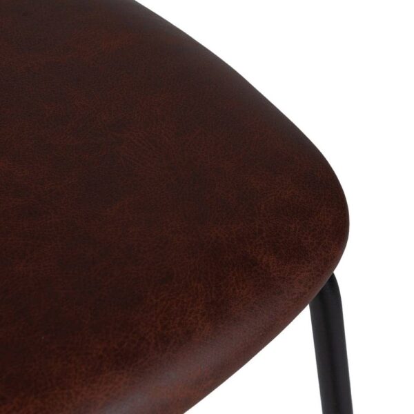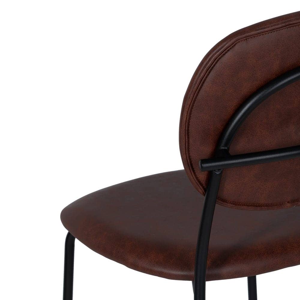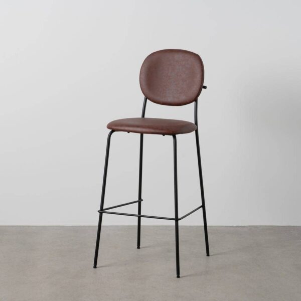 Este elegante taburete marrón de piel sintética y metal es perfecto para darle un toque moderno y sofisticado a tu salón o barra de cocina. Su diseño limpio y minimalista lo convierte en una opción versátil para ambientes de estilo industrial, contemporáneo o incluso nórdico. El asiento acolchado de espuma densa y el respaldo curvado proporcionan la comodidad que necesitas, mientras que la estructura de hierro asegura estabilidad y durabilidad.