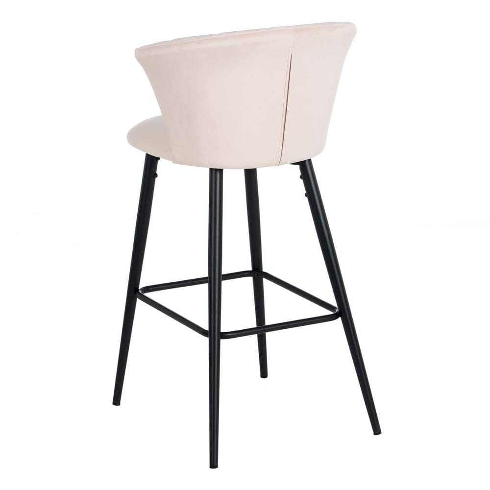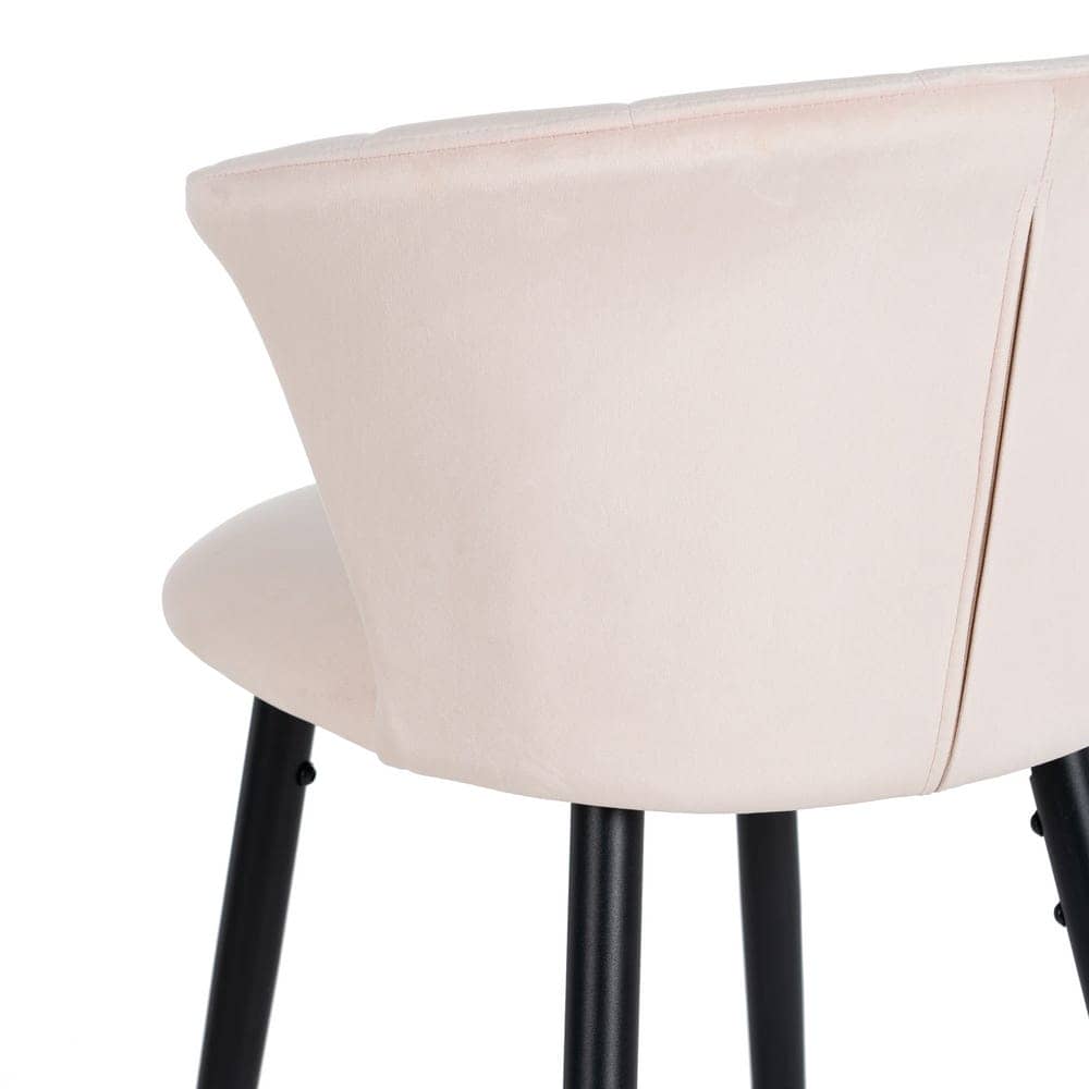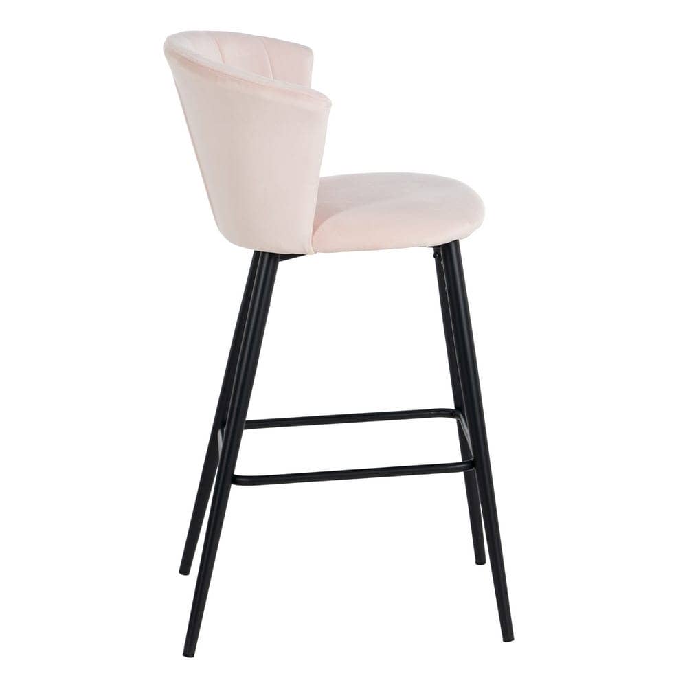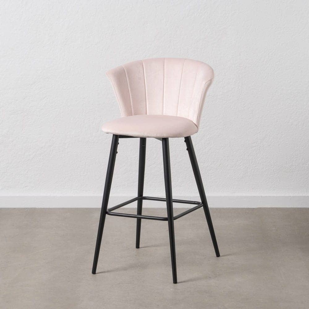 Añade un toque de glamour a tus espacios con este pack de 2 taburetes de terciopelo rosa. Su diseño elegante, con respaldo envolvente y patas metálicas negras, combina estilo y confort. Altura de asiento de 72 cm, perfecto para barras y mesas altas. ¡Hazlos tuyos!