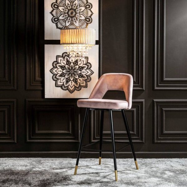 Descubre el equilibrio perfecto entre estilo y comodidad con este pack de 2 taburetes rosa. Su diseño sofisticado, con asiento de tejido suave y patas metálicas con detalles dorados, eleva cualquier espacio. Altura ideal de 75 cm para barras o mesas altas. ¡Añade un toque único a tu hogar!