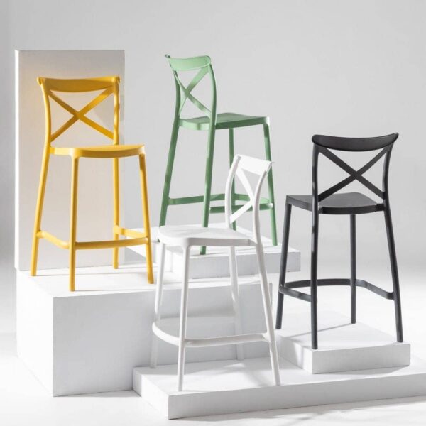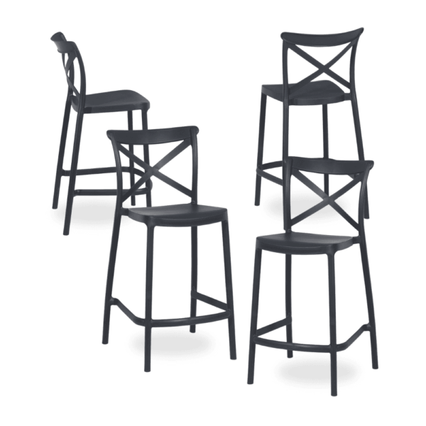 Versatilidad y diseño moderno en un pack de 4 taburetes apilables. Perfectos para salones, terrazas o eventos, su estructura de polipropileno resistente combina estilo y funcionalidad. Con un asiento de 66 cm de altura y un respaldo ergonómico de 38 cm, garantizan confort y estabilidad en cualquier ocasión.