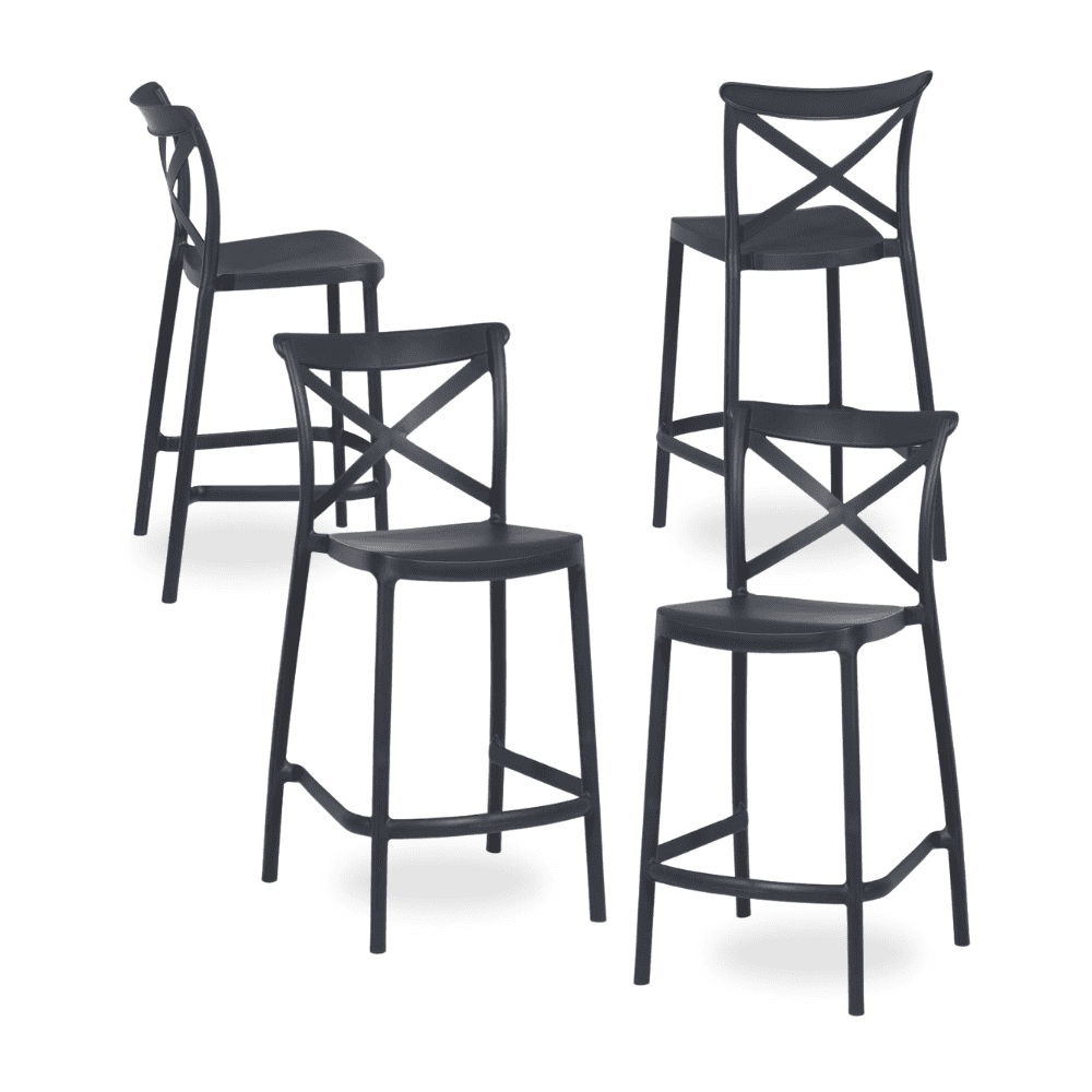 Pack de 4 Taburetes Apilables Gris Oscuro de Polipropileno para Salón – Diseño Moderno y Ergonómico, 97 cm de Altura, Ideal para Terrazas y Eventos