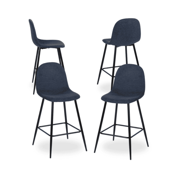 Aporta un toque de elegancia y modernidad a tu salón con el Pack de 4 Taburetes Azules. Diseñados con un tapizado en tejido azul sofisticado y una estructura metálica resistente, son la combinación perfecta de estilo y funcionalidad. Con una altura de asiento de 63 cm y un respaldo ergonómico de 34,5 cm, ofrecen la comodidad ideal para disfrutar de largas veladas.