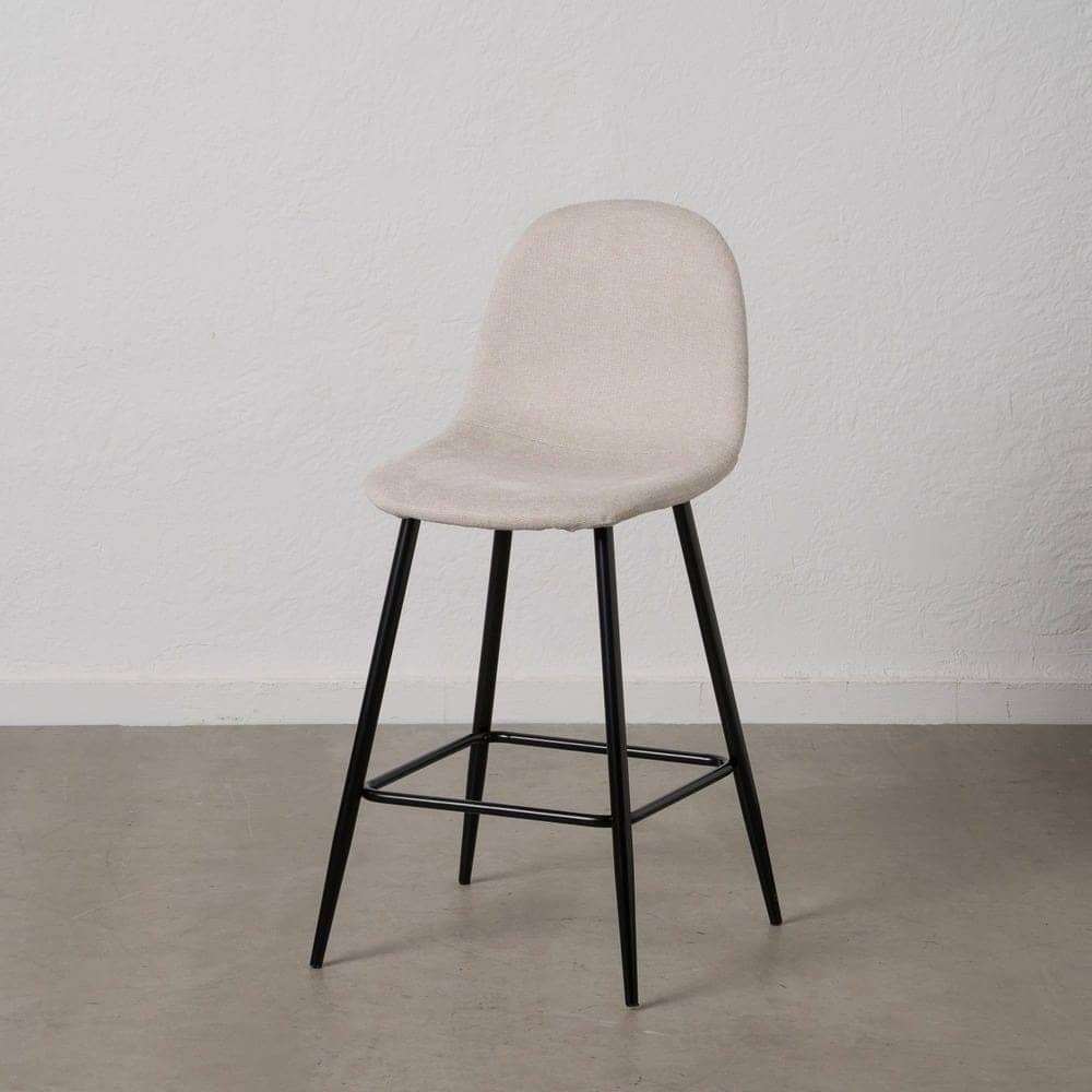 Eleva la decoración de tu salón con el Pack de 4 Taburetes Crema. Su diseño elegante y funcional combina un tapizado en tejido suave y resistente con una estructura metálica robusta, garantizando estilo y durabilidad. El asiento, situado a 63 cm de altura, se adapta perfectamente a barras y mesas altas, ofreciendo comodidad gracias a su respaldo ergonómico de 34,5 cm.