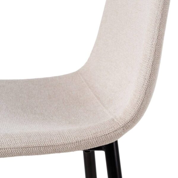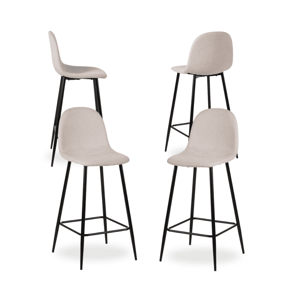 Combina comodidad y diseño elegante con este pack de 4 taburetes crema de tejido y metal. Su asiento amplio de 42 cm y respaldo ergonómico de 35 cm ofrecen el soporte perfecto para largas veladas. Una elección práctica y con estilo para tu hogar.