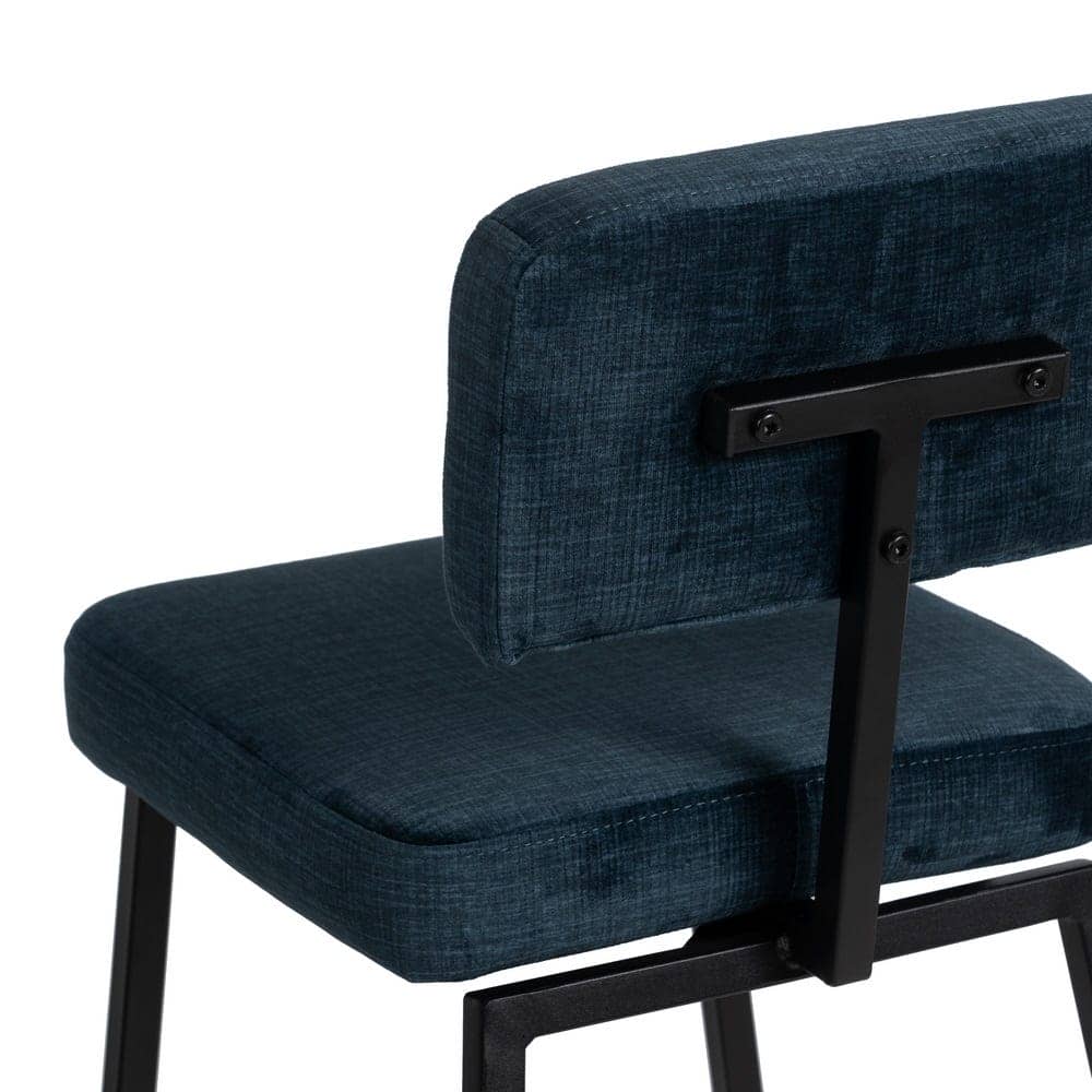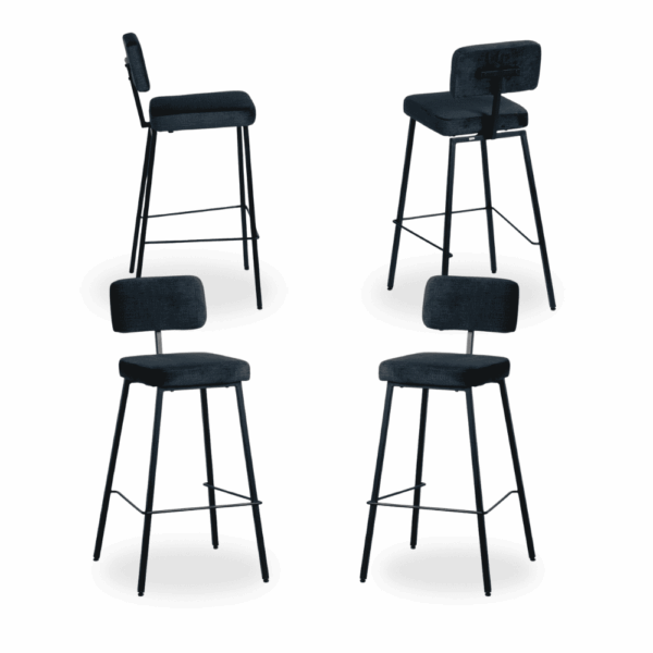 Aporta un toque moderno y elegante a tu espacio con el Pack de 4 Taburetes en azul intenso, perfectos para decorar y crear ambientes sofisticados. Confeccionados con tejido 100% poliéster de alta calidad y un gramaje de 400 g/m², ofrecen un tacto suave y resistente al uso diario. Su estructura de acero asegura robustez, soportando hasta 120 kg sin comprometer la estabilidad.
