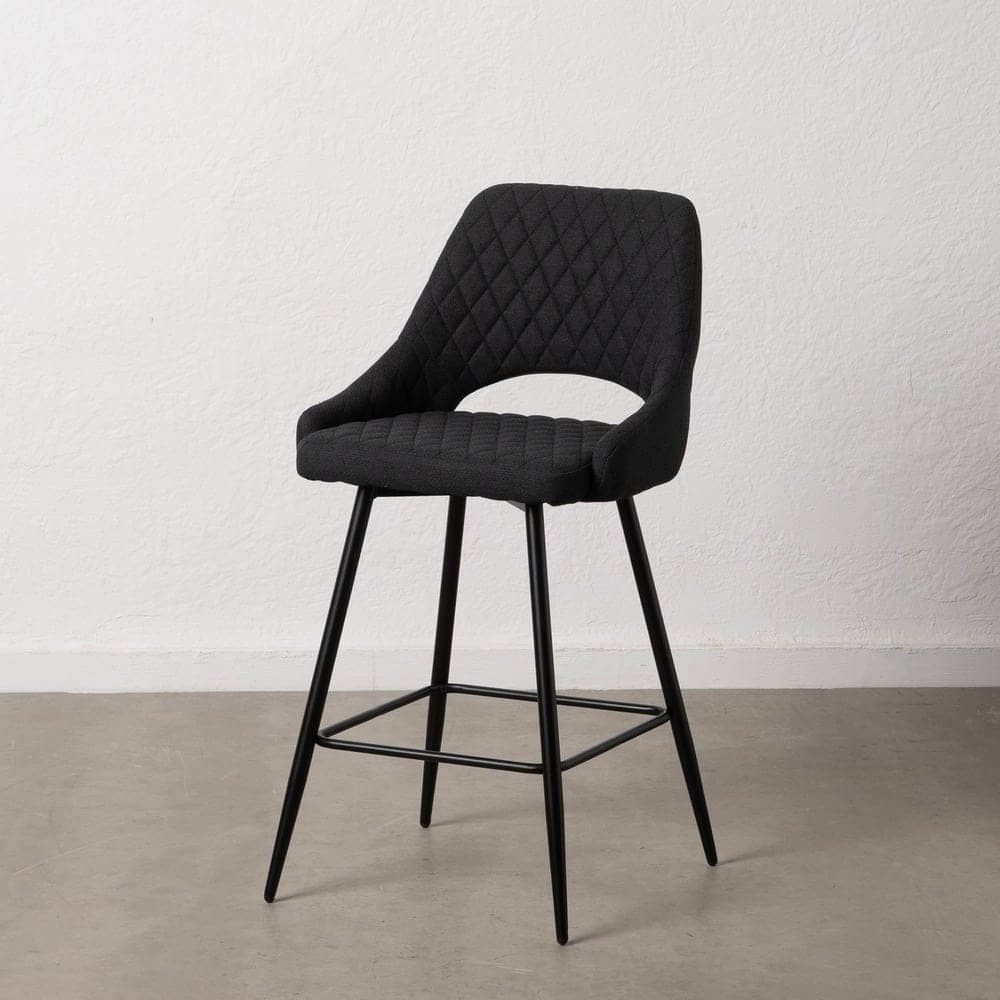 Perfectos para barras de cocina o áreas sociales, estos taburetes destacan por su diseño acolchado en rombos y patas metálicas que aportan estabilidad y resistencia. Su calidad está certificada según la normativa EN 16139:2013, ofreciendo durabilidad y fiabilidad. Transforma tus espacios y disfruta de una experiencia única de confort. Hazlos tuyos y reinventa tu decoración.