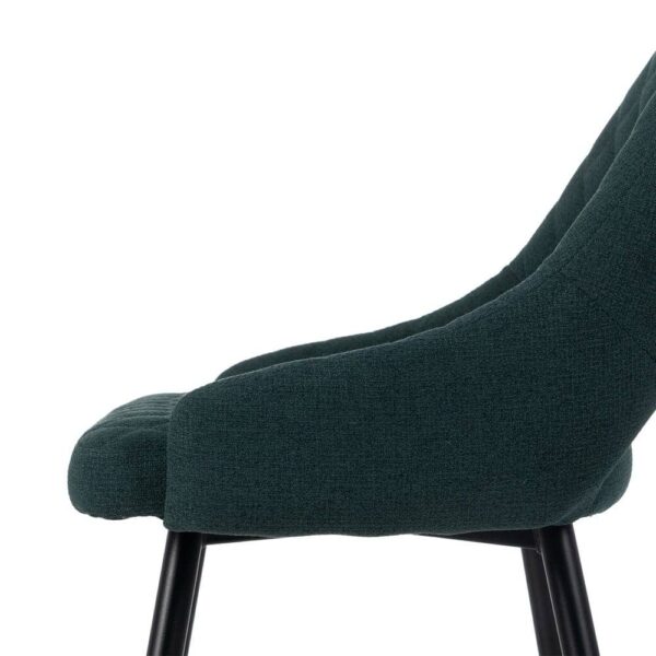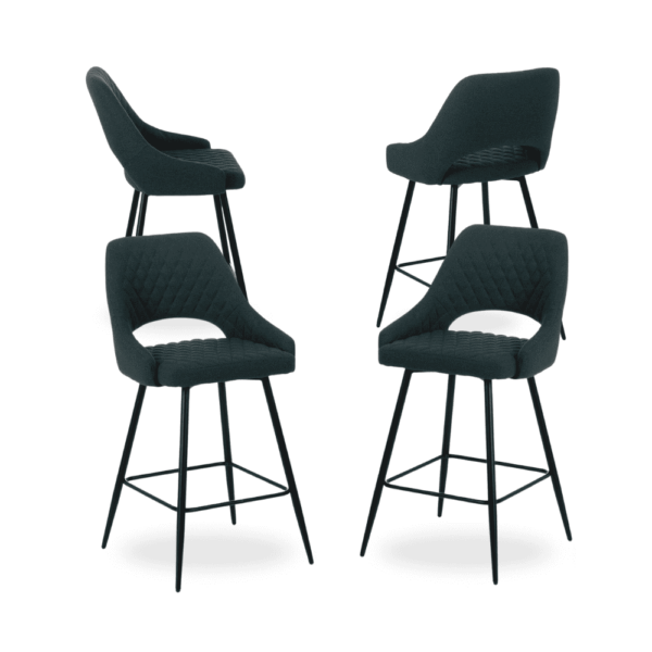 Descubre el Pack de 4 Taburetes Verde, el toque de estilo que tu hogar necesita. Su tapizado en tejido verde profundo 100% poliéster combinado con una estructura metálica negra crea un diseño sofisticado y moderno que no pasa desapercibido. Con un asiento a 64 cm de altura y un respaldo ergonómico de 34,5 cm, ofrece una experiencia de confort única.