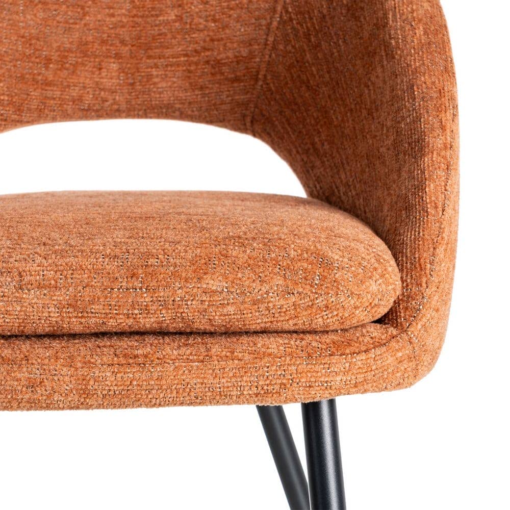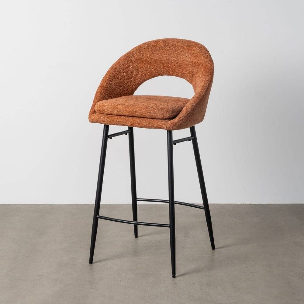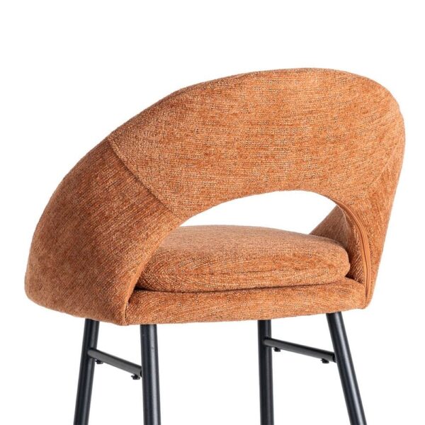 Material: tejido – metal Patas: hierro negro Tejido: 100% poliéster Gramaje: 320gr/m2 Altura asiento: 75cm. Altura respaldo: 31cm. Ancho asiento: 40cm. Profundo asiento: 40cm. Patas para montar. Cojín desenfundable con cremallera. Cumple normativa EN16139:2013