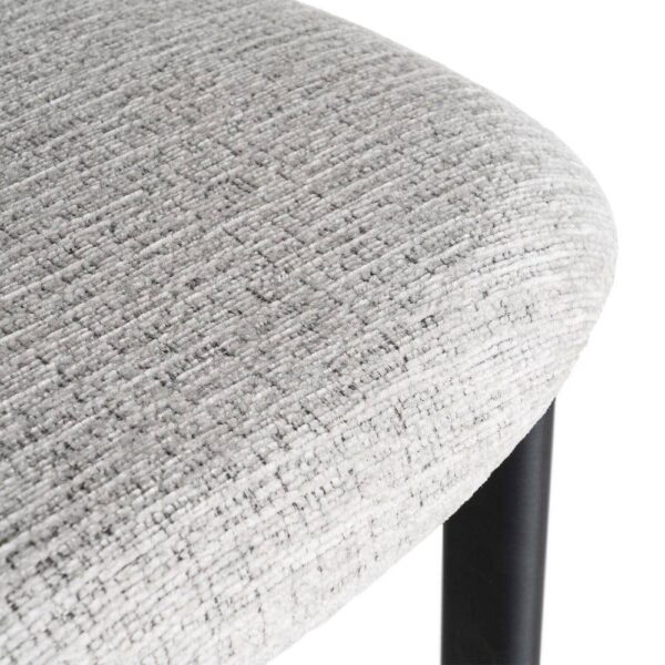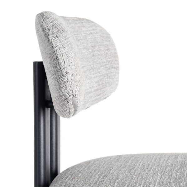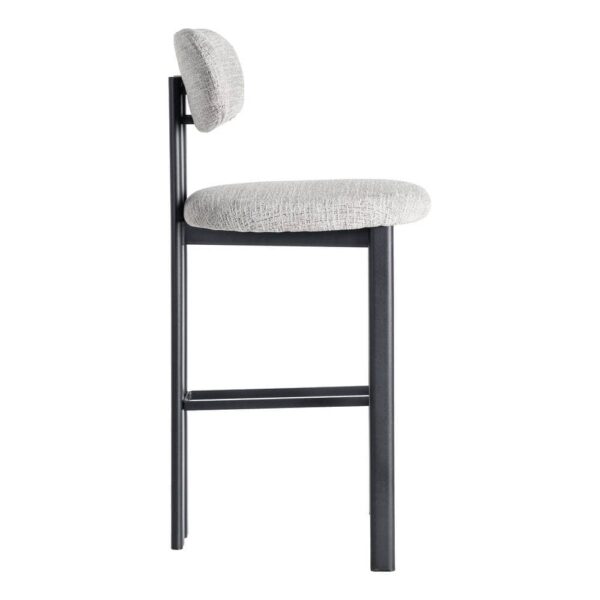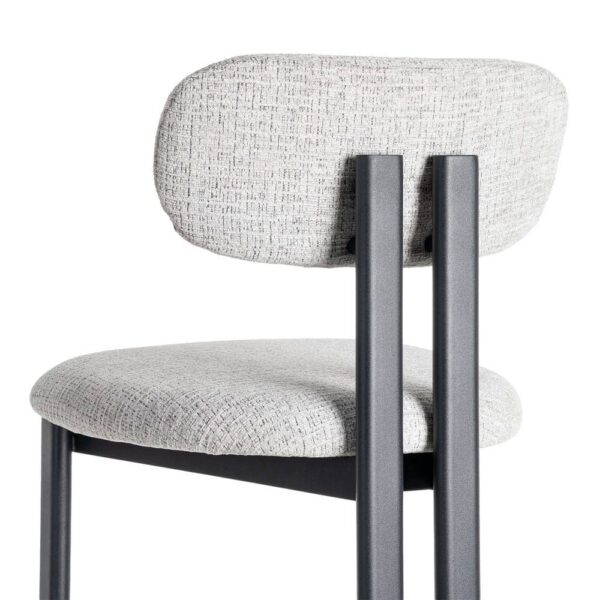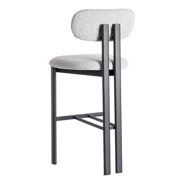 Material: tejido 100% poliéster – metal (acero) Tejido repelente al agua. Altura asiento: 75cm. Altura respaldo: 35cm. Ancho asiento: 50cm. Precisa montaje. No apilable. Cumple normativa: EN16139:2013