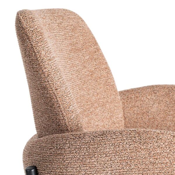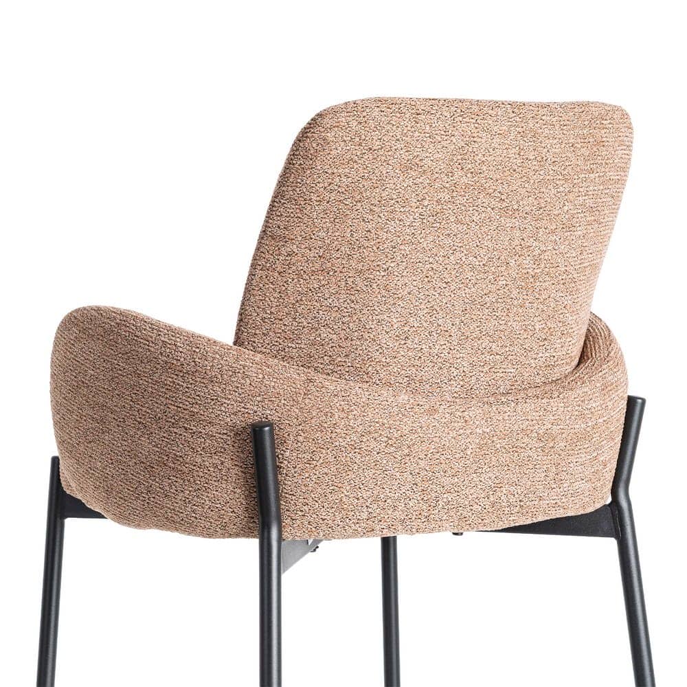 Material: tejido, metal. Altura asiento: 65cm. Ancho asiento: 42cm. Profundidad asiento: 37,5cm. Altura respaldo: 31cm. Altura reposabrazos: 12cm (78cm desde el suelo). No apilable. Cuample la normativa EN16139 (catering).