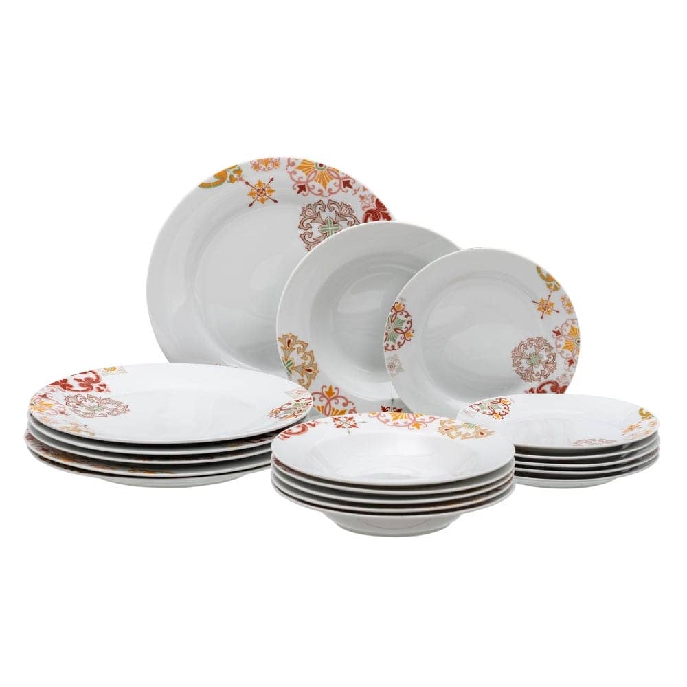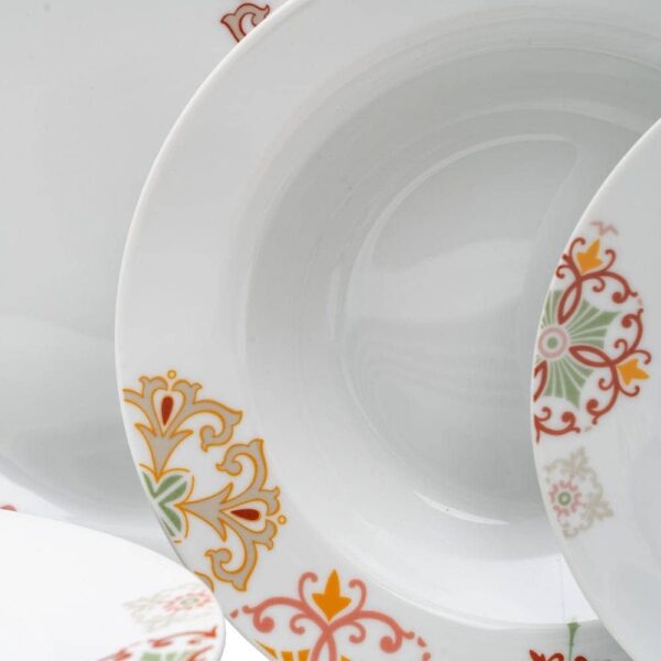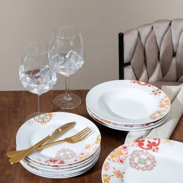 La vajilla de 18 piezas Burdeos-Mostaza es ideal para quienes buscan una combinación de elegancia y versatilidad. Su diseño en tonos burdeos y mostaza aporta un toque cálido y vibrante a cualquier comida, ya sea para el día a día o eventos especiales. Hecha de porcelana resistente, incluye platos diseñados para realzar cada presentación: 6 platos llanos (27 cm de diámetro), perfectos para tus recetas principales, 6 platos hondos (21,5 cm) ideales para sopas o pastas, y 6 platos de postre (19,5 cm) que realzan la dulzura de cada bocado. Su resistencia la hace apta para lavavajillas y microondas, facilitando su uso diario. Aunque no está destinada para el canal HORECA, es perfecta para el hogar, añadiendo estilo y practicidad a cada mesa. ¡Haz que tus comidas sean inolvidables con esta vajilla llena de vida y diseño!