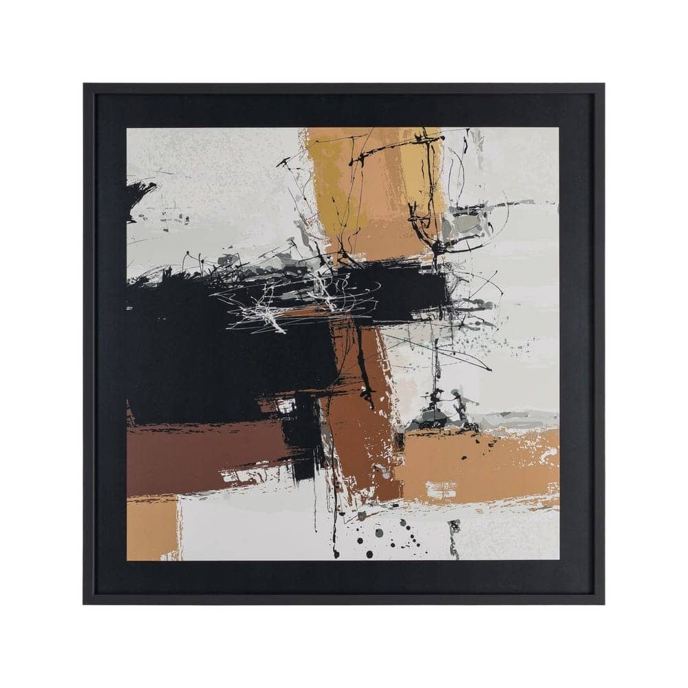 Cuadro Abstracto Impreso en Madera y Cristal con Marco Negro 73x3x73 cm