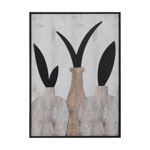 El marco de DM aporta un acabado robusto y moderno, mientras que el material de impresión/talla en DM asegura durabilidad y resistencia. Dimensiones de 50 cm x 3 cm x 70 cm permiten que este cuadro sea adecuado para una variedad de espacios, desde salones hasta pasillos, adaptándose perfectamente a cualquier ambiente. Además, su sistema de sujeción facilita su correcta instalación en la pared, asegurando que la pieza luzca en su mejor forma.