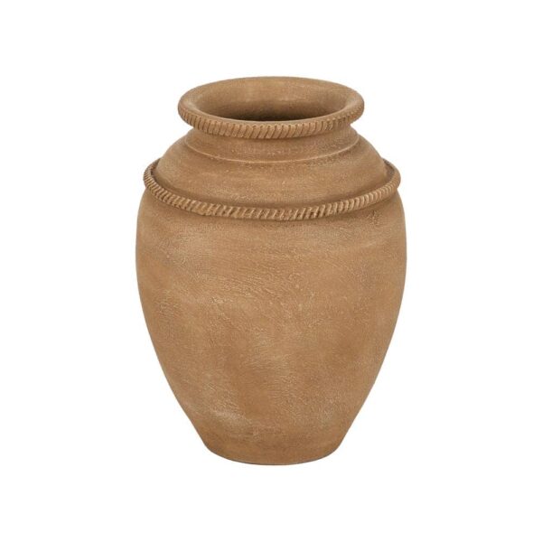 Tinaja Beige Pequeña de Cerámica con Drenaje – 37 cm, Ideal para Plantas y Decoración