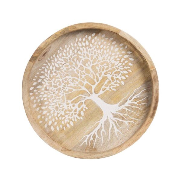 Bandeja de Madera de Mango Blanco-Natural 35x35x5 cm