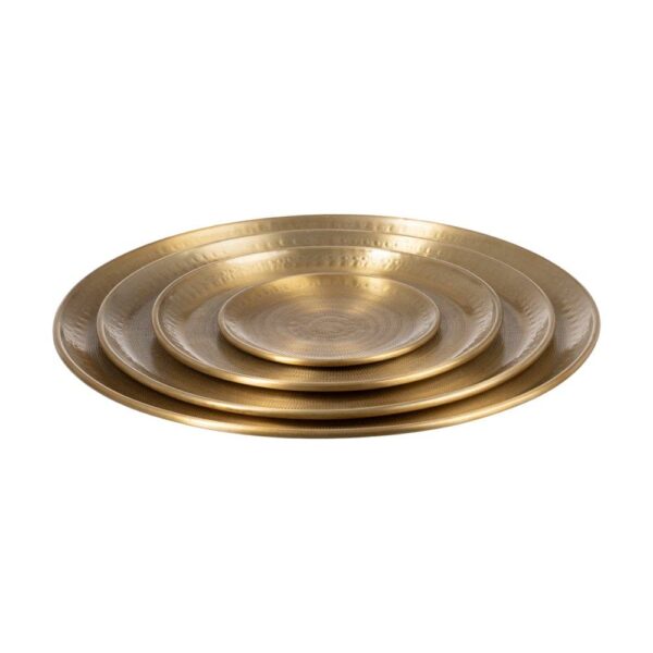 Set de 4 Bandejas Doradas de Metal Decorativo – Aluminio, Medidas Variadas (20,3×20,3cm a 47,6×47,6cm) – Ideal para Decoración y Presentación