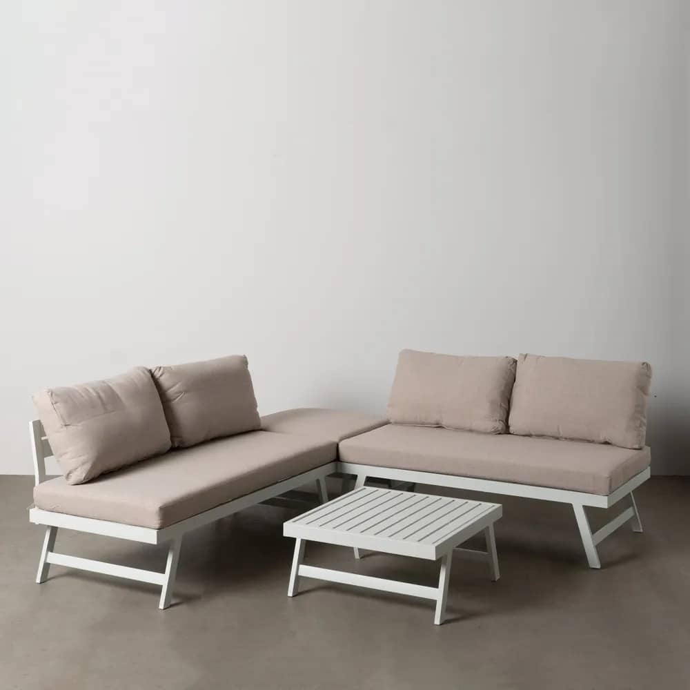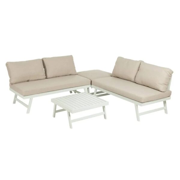 Conjunto de Jardín Beige y Blanco de Aluminio con Sofás, Esquinero Ajustable y Mesa de Centro – Elegancia y Comodidad para tu Terraza