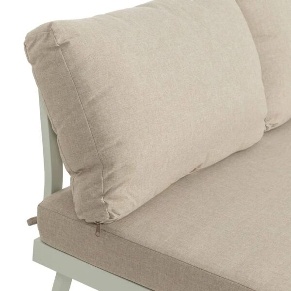 Este conjunto de jardín es ideal para disfrutar del exterior con estilo y funcionalidad. Compuesto por dos sofás (130×71,5×76 cm), un esquinero ajustable (64,5×64,5×76 cm) y una mesa de centro (64,5×64,5×76 cm), su estructura de aluminio garantiza ligereza y durabilidad. Los cojines, confeccionados en tejido 100% olefina, son desenfundables para un mantenimiento sencillo. El relleno del asiento combina 8 cm de foam de densidad 22 con una capa de algodón de 2 cm para ofrecer comodidad excepcional, mientras que los respaldos cuentan con 5 cm de algodón y fibra de polipropileno para un soporte ergonómico. Con una altura de asiento de 41 cm, respaldo de 39 cm y profundidad de 45 cm, este conjunto es perfecto para largas jornadas de relax. Su diseño moderno en tonos beige y blanco aporta frescura y elegancia a cualquier espacio exterior. ¡Hazlo tuyo y disfruta de momentos inolvidables al aire libre!