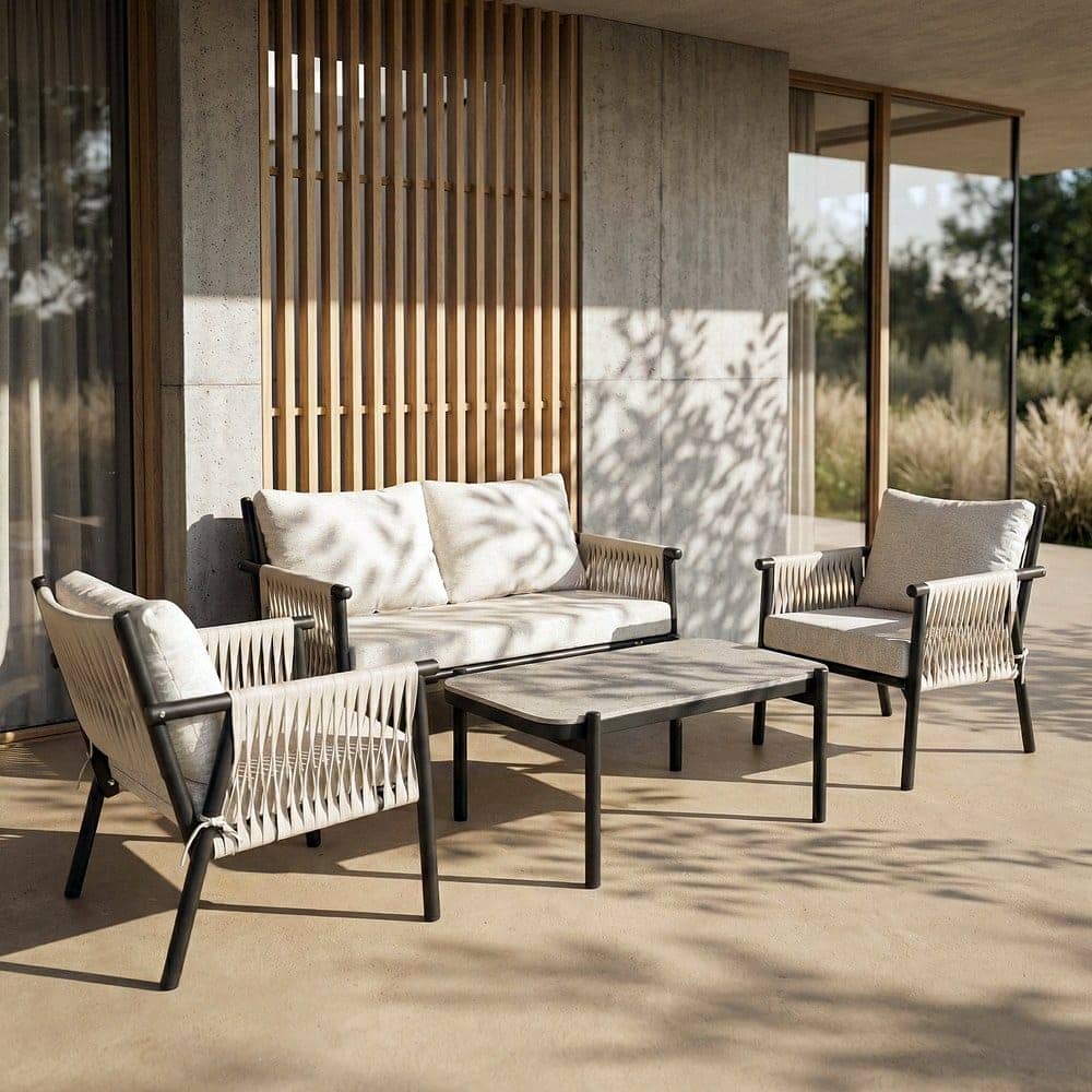 Conjunto de Muebles de Jardín Cala | Acero y Ratán Estilo Mediterráneo