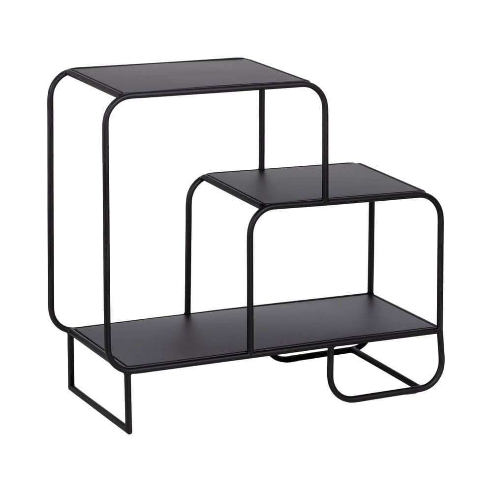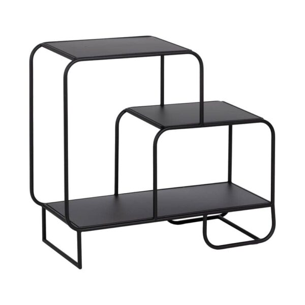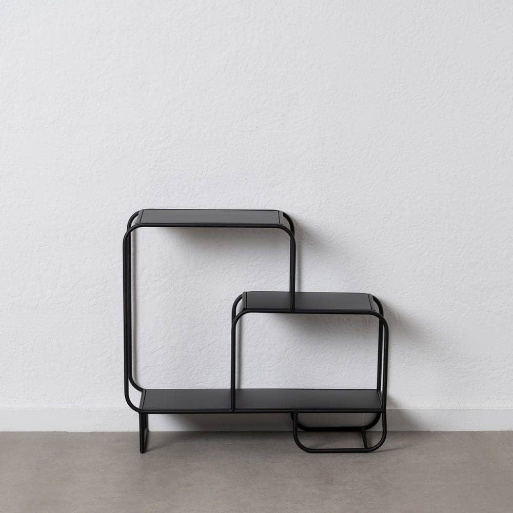 Material: hierro. Altura patas: 12cm. Altura huecos: 28,5cm – 53,5cm. Medidas bandejas: 42,5x30cm – 39,5x30cm – 72x30cm.