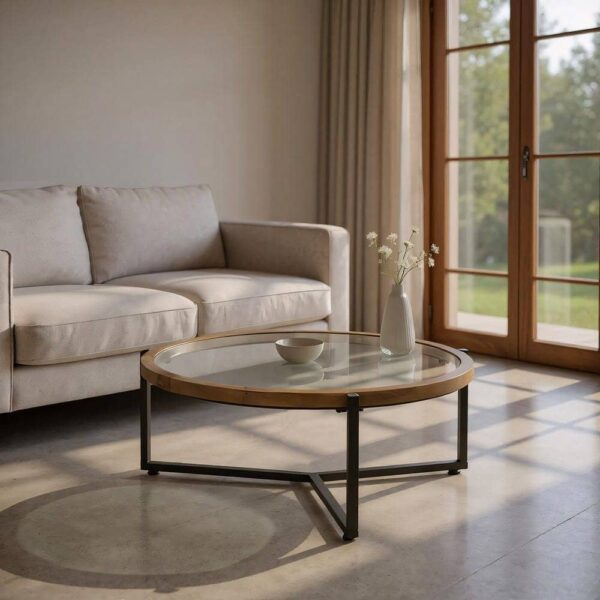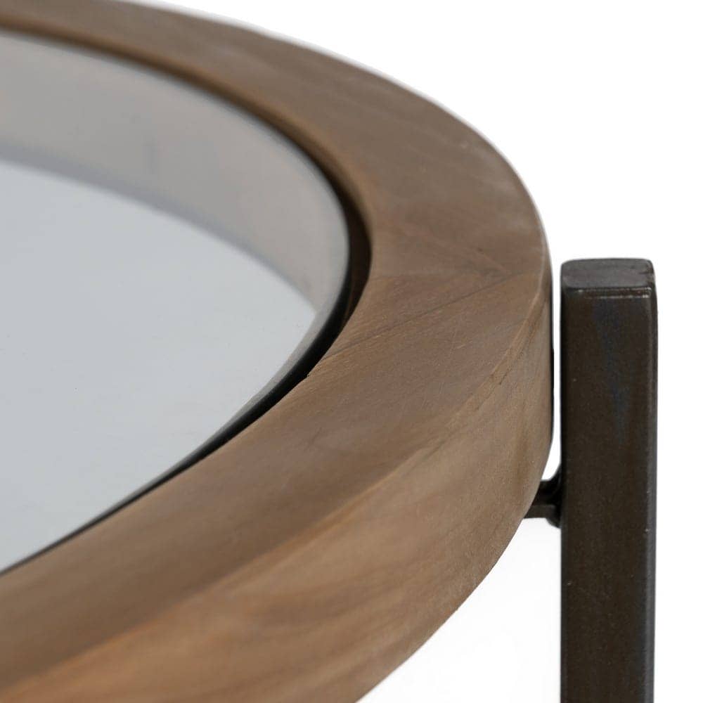 Material: Madera de abeto y hierro. Diámetro mesa: 100cm. Altura de las patas:35cm. Peso máximo soportado:30kgs. Grosor del sobre:5cm. Para montar.